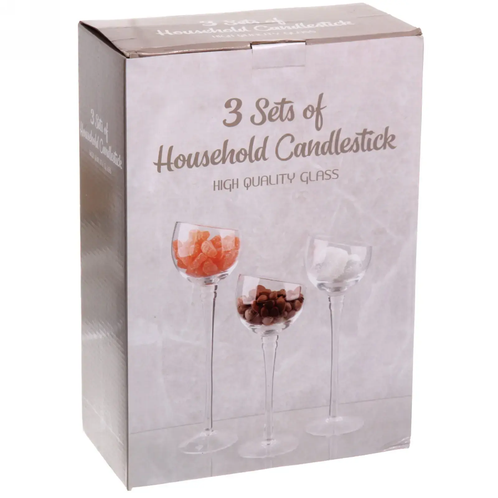 Этот набор из 3 стеклянных подсвечников отличается универсальностью и элегантностью, создавая уют и тепло в любом помещении. Они отлично подходят для романтических вечеров, праздничных событий или ежедневных ужинов, добавляя мягкое освещение и стиль. Благодаря прозрачному стеклу и разной высоте, декор легко интегрируется в любой интерьер — от классики до современного минимализма.