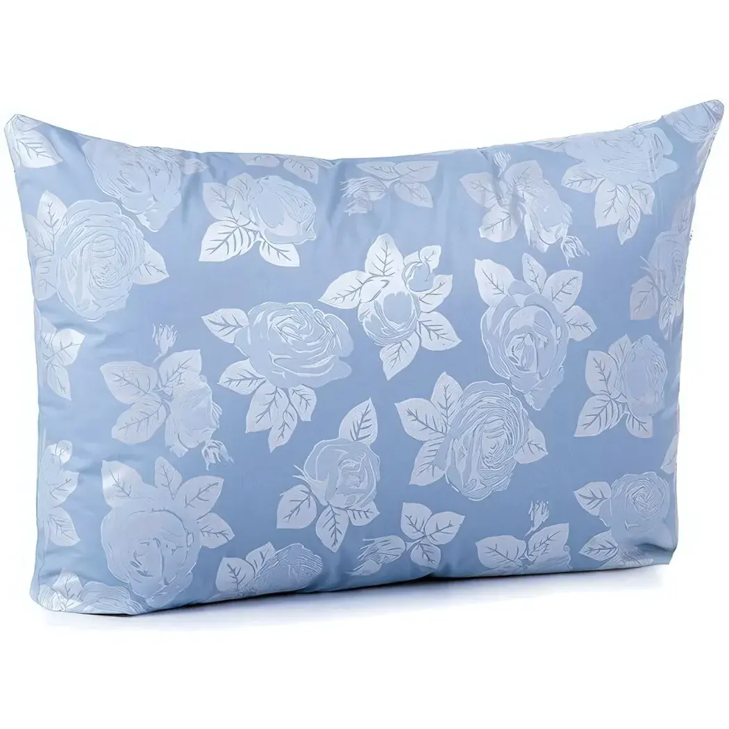 Ткань плотной текстуры предотвращает миграцию наполнителя, что гарантирует долговечность использования. Спокойный голубой цвет с ненавязчивым цветочным принтом впишется в любой интерьер и добавит нотку элегантности.
