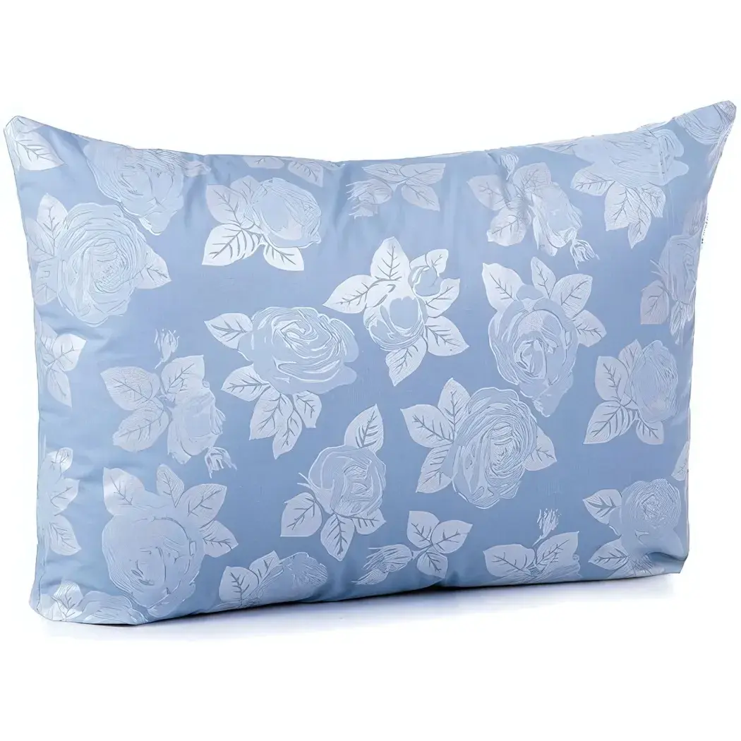 Размер подушки 50х70 см идеально подходит для стандартных наволочек. Чехол украшен элегантным цветочным принтом в голубых тонах, который станет стильным акцентом в спальне.