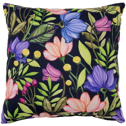 Размер подушки составляет 40х40 см, что делает её удобной для использования в различных условиях. Тёмно-синий фон с яркими цветами, включая розовые, фиолетовые и жёлтые оттенки, добавляет живости и свежести в ваш дом. Подушка станет отличным подарком для друзей и близких, которые ценят комфорт и стиль.