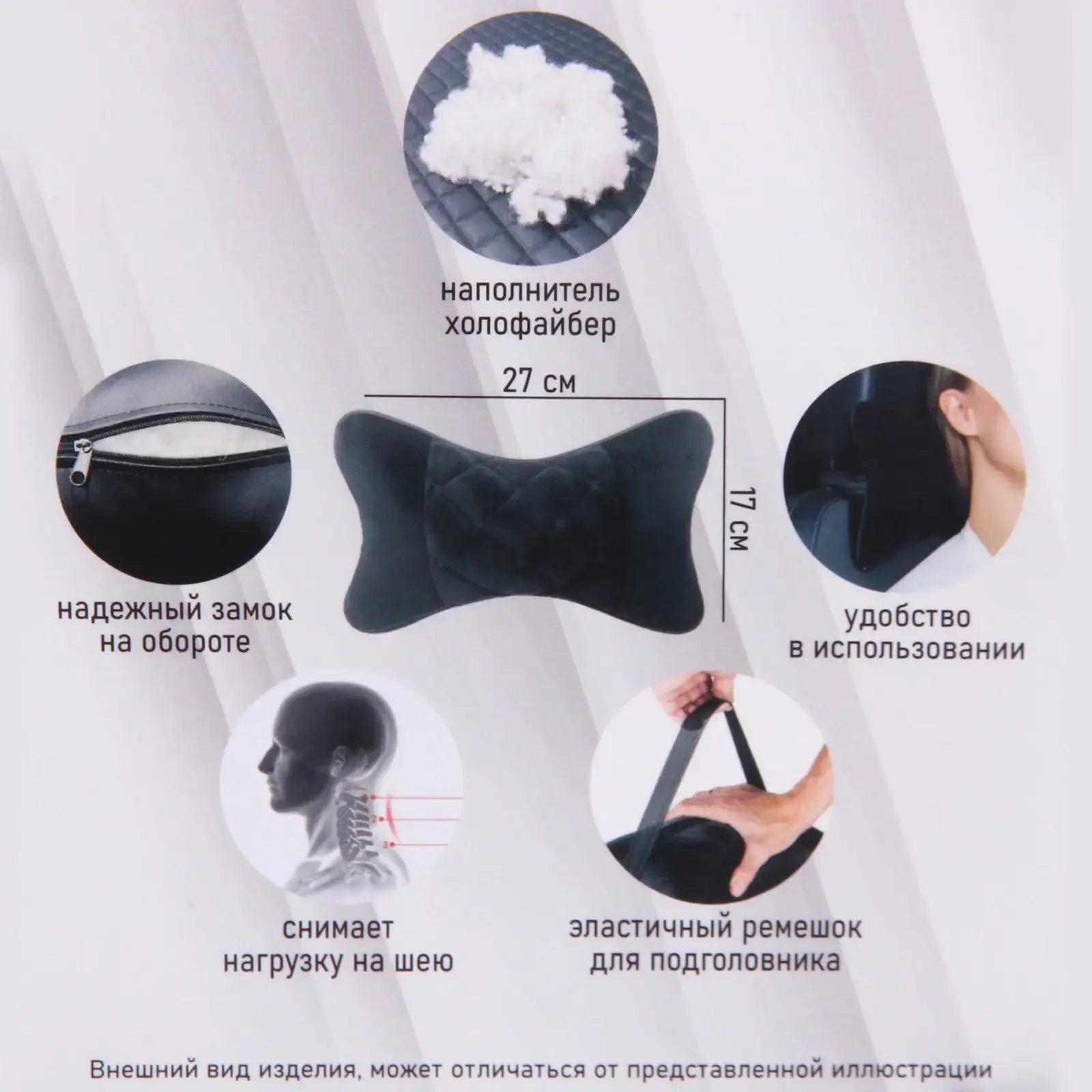 - Эргономичную форму, которая обеспечивает надежную поддержку шеи;