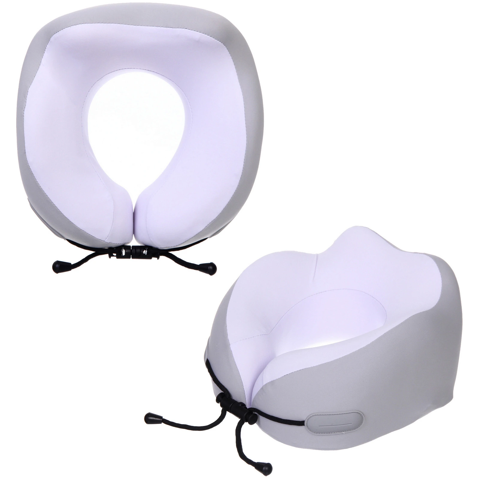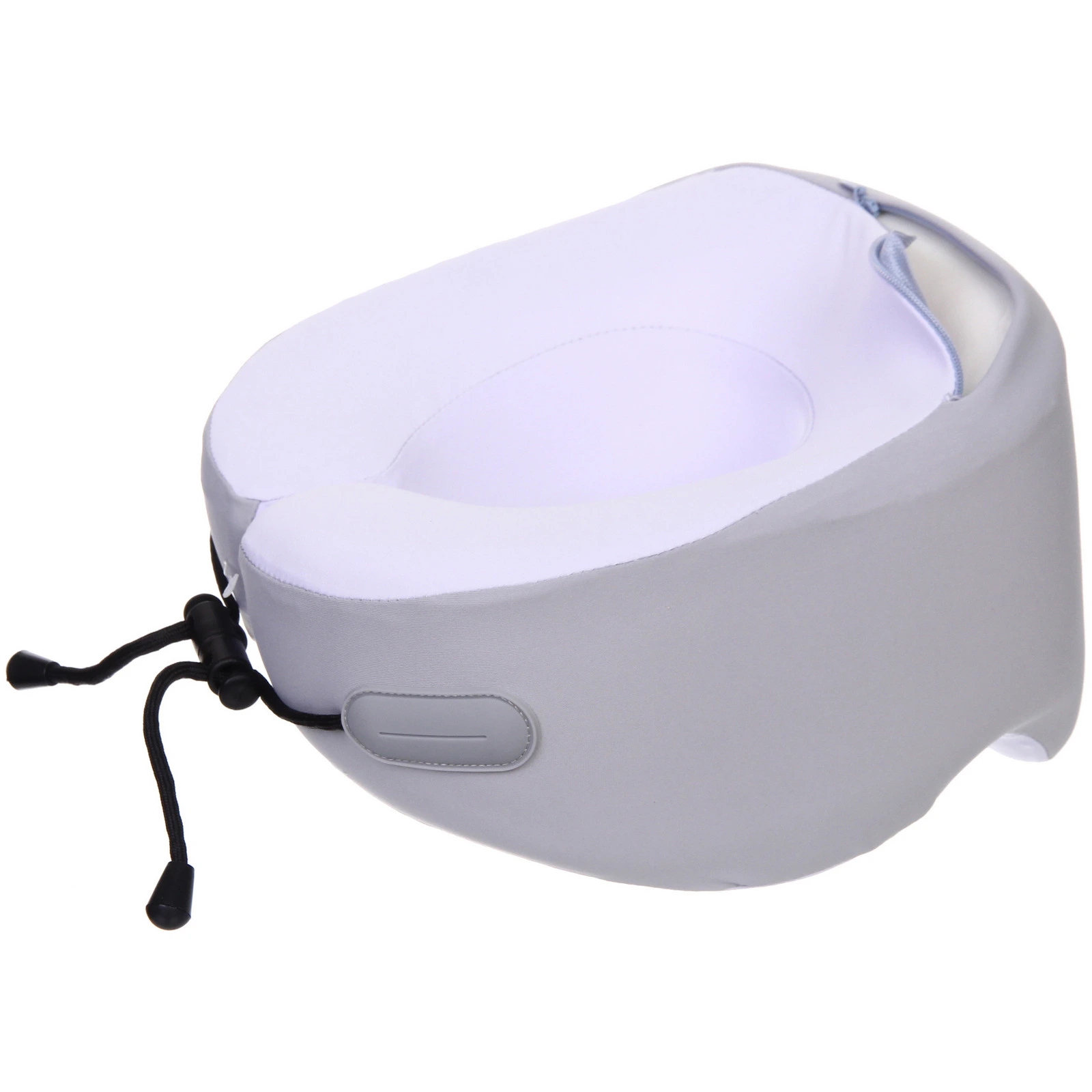 - Практичный фиксирующий шнур с регулятором — позволяет надежно закрепить подушку на спинке кресла или шее, предотвращая сползание во время сна.