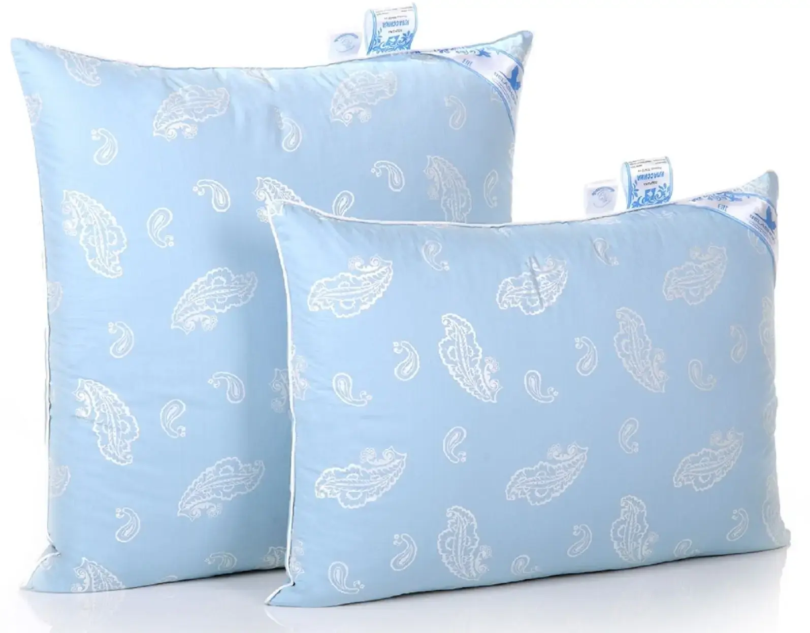 Создайте атмосферу комфорта с гипоаллергенной подушкой, которая сочетает практичность и изысканный дизайн. Голубой оттенок с белоснежным орнаментом в виде листьев добавит свежести в любую комнату.