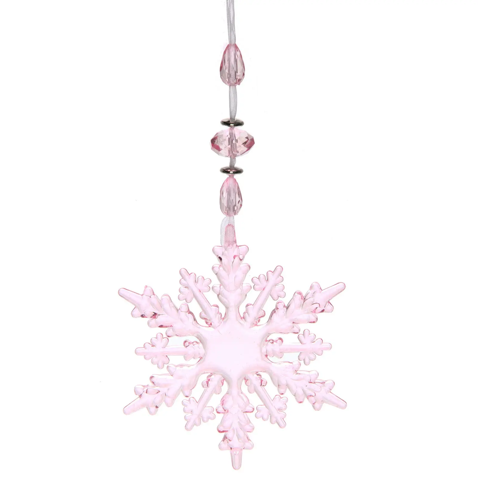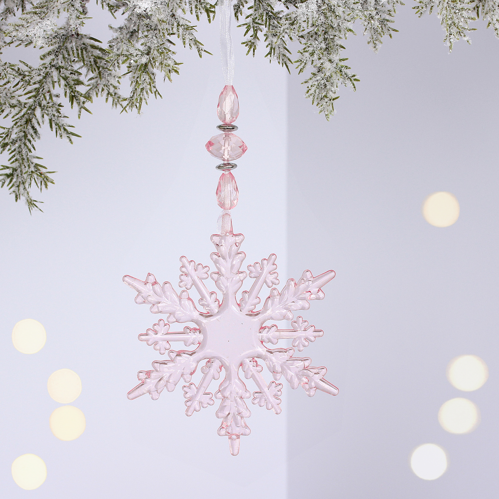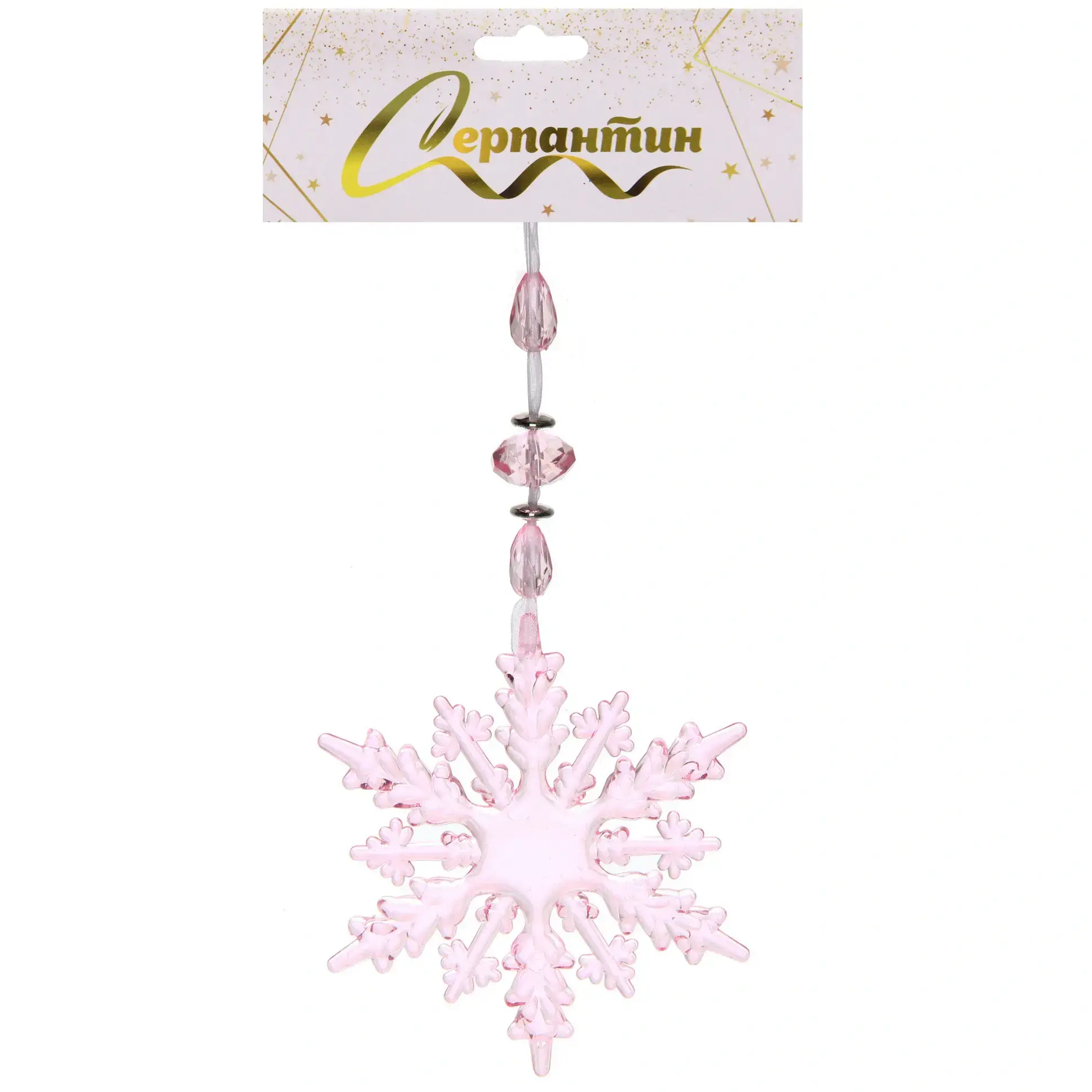 Подвеска новогодняя "Ажурная снежинка" 16см, пластик, розовый