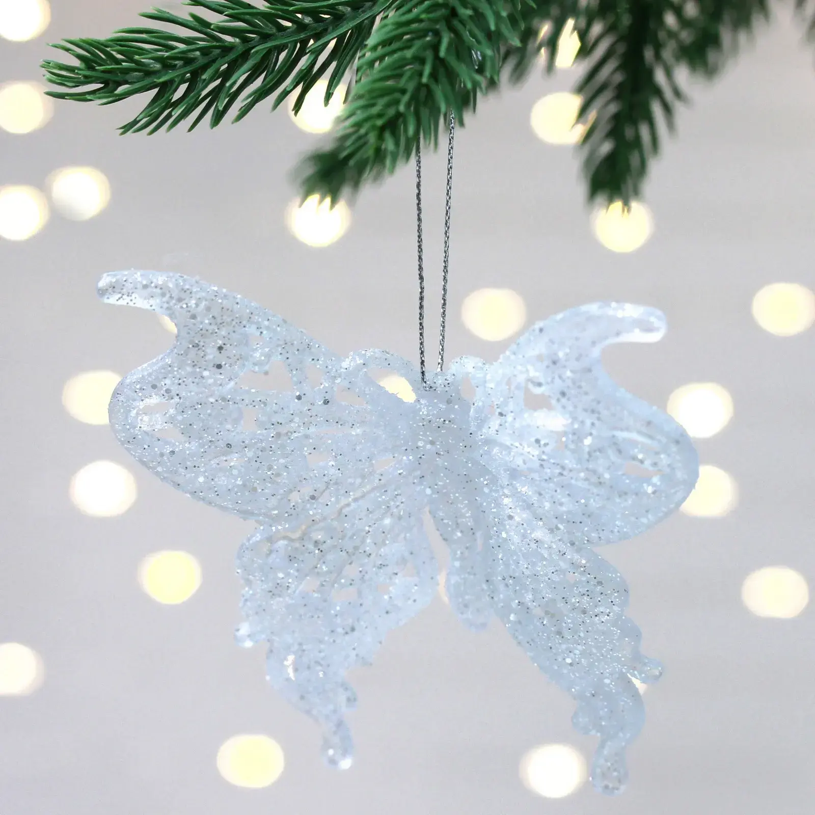 Создайте атмосферу волшебства и уюта с помощью подвески «Бабочка». Это изящное украшение белого цвета с блестящей поверхностью и глиттером станет отличным дополнением к вашему новогоднему декору. Симметричная форма с детализированными узорами крыльев придаст вашему интерьеру особый шарм и элегантность.