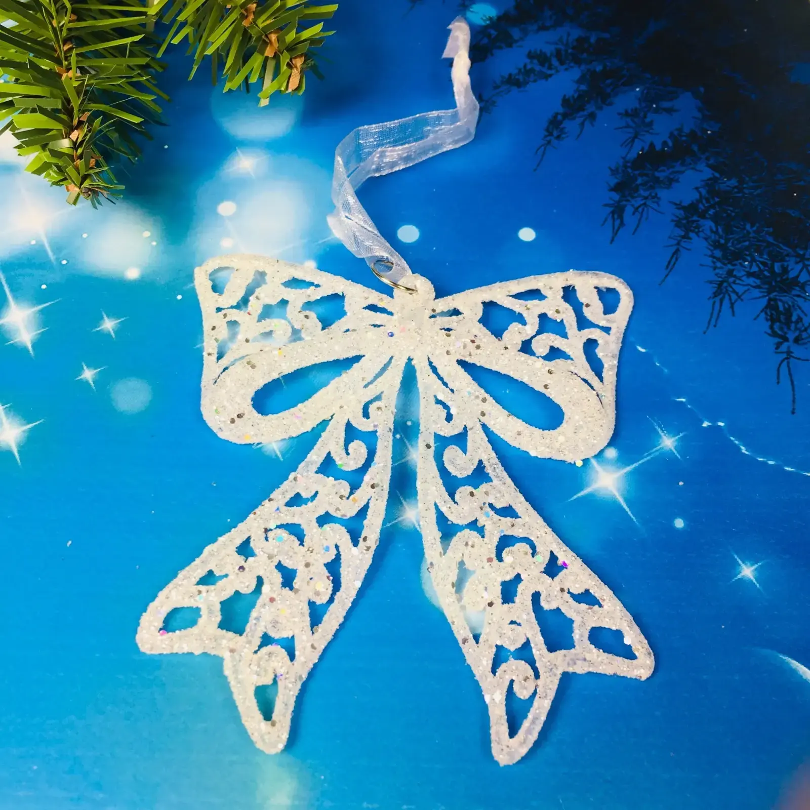 Создайте атмосферу праздника с помощью подвески «Бантик ажурный»! Это украшение станет ярким акцентом в вашем интерьере, добавляя нотки изящества и стиля. Белый блеск и ажурный дизайн делают его универсальным элементом для любого новогоднего оформления.