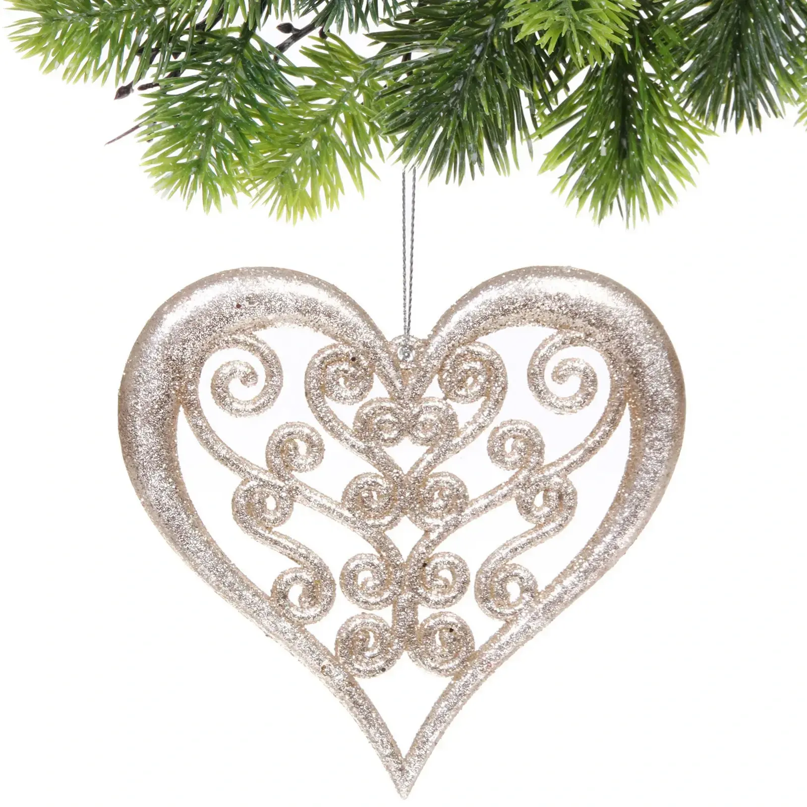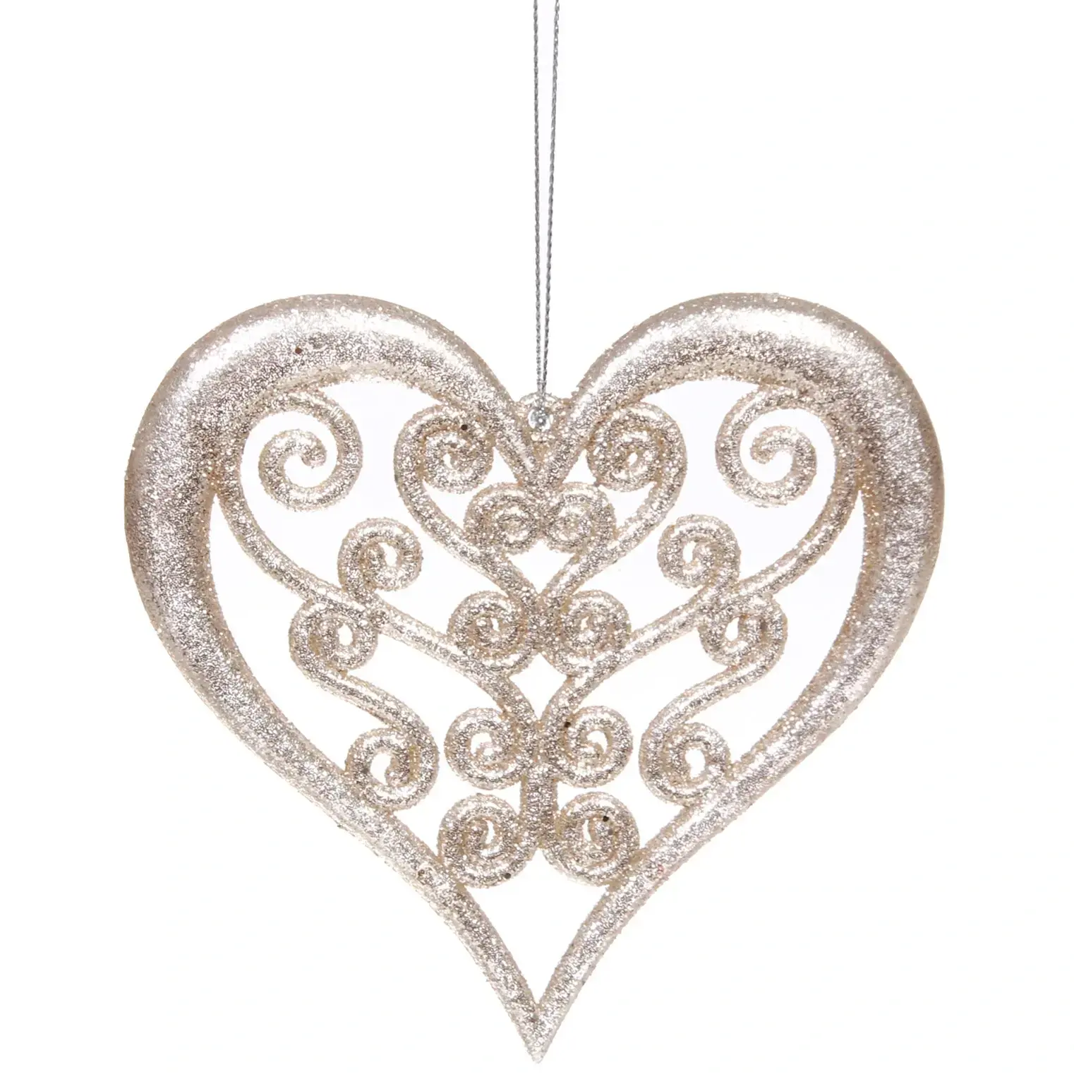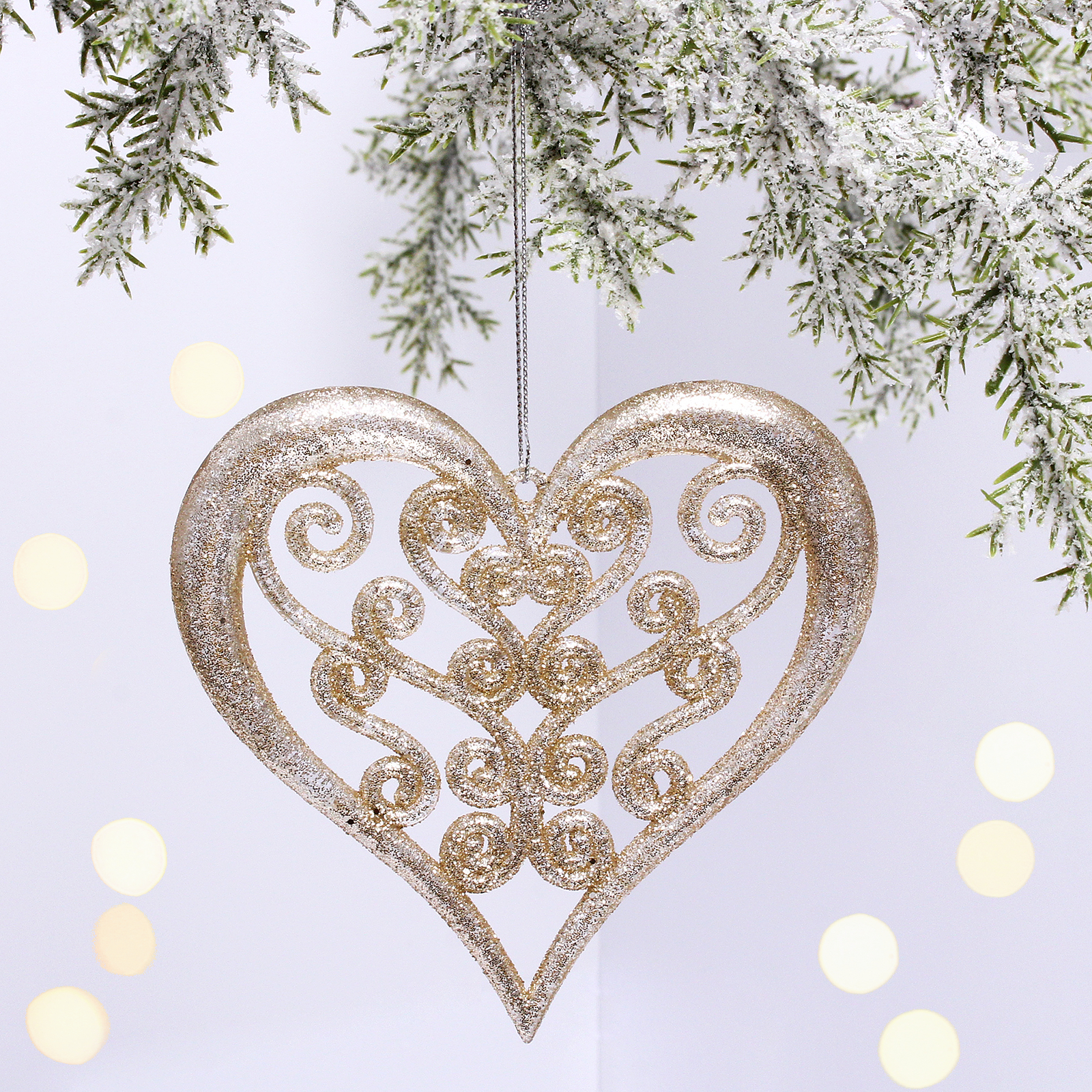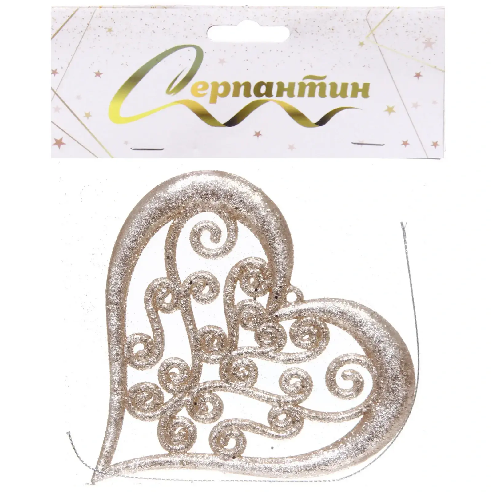 Создайте атмосферу уюта и волшебства с подвеской «Блеск сердца». Это изящное украшение в форме сердца, выполненное в золотистом цвете, станет ярким акцентом в вашем интерьере. Легкий и блестящий материал придаёт изделию особый шарм, а витиеватый дизайн с завитками и орнаментами добавляет нотку элегантности.