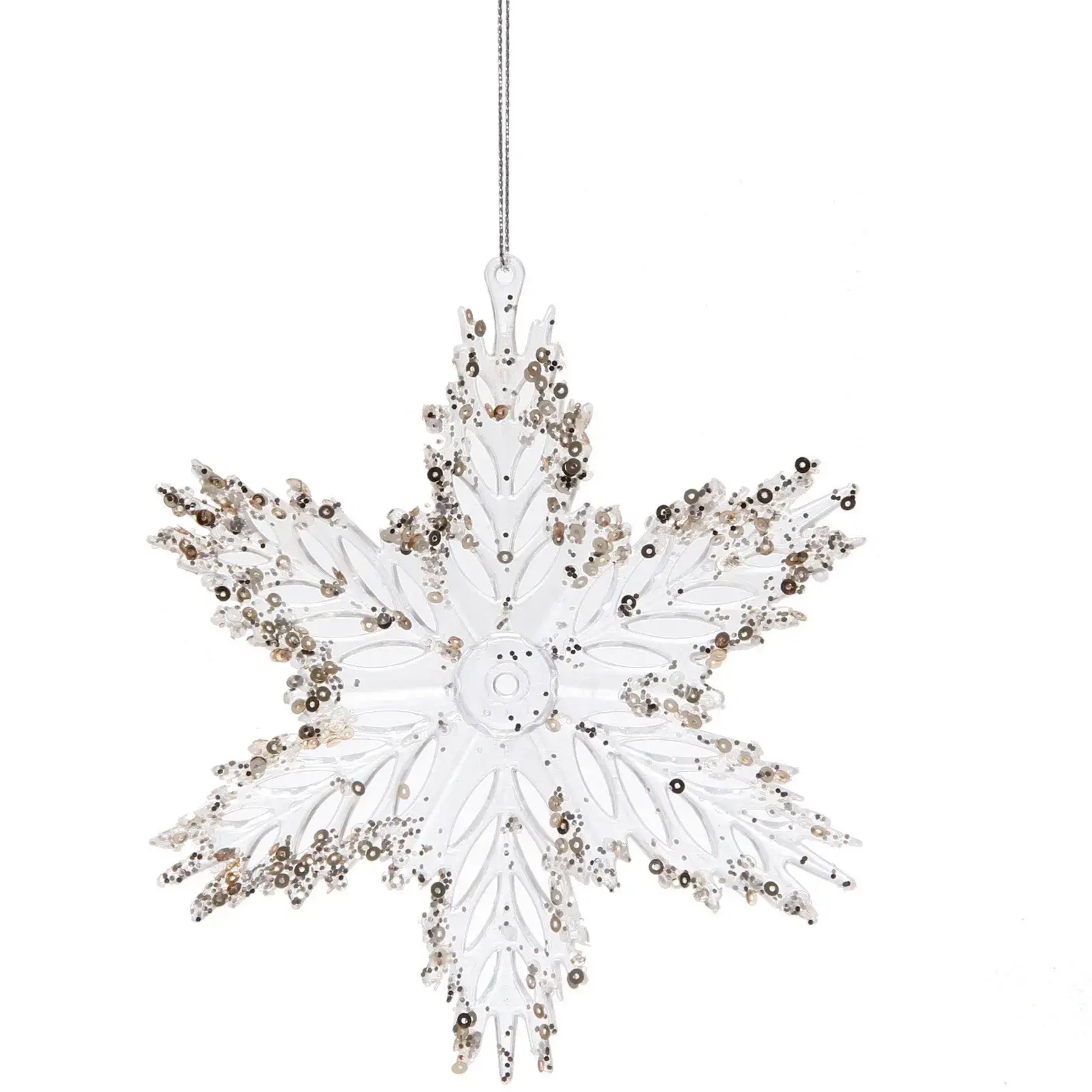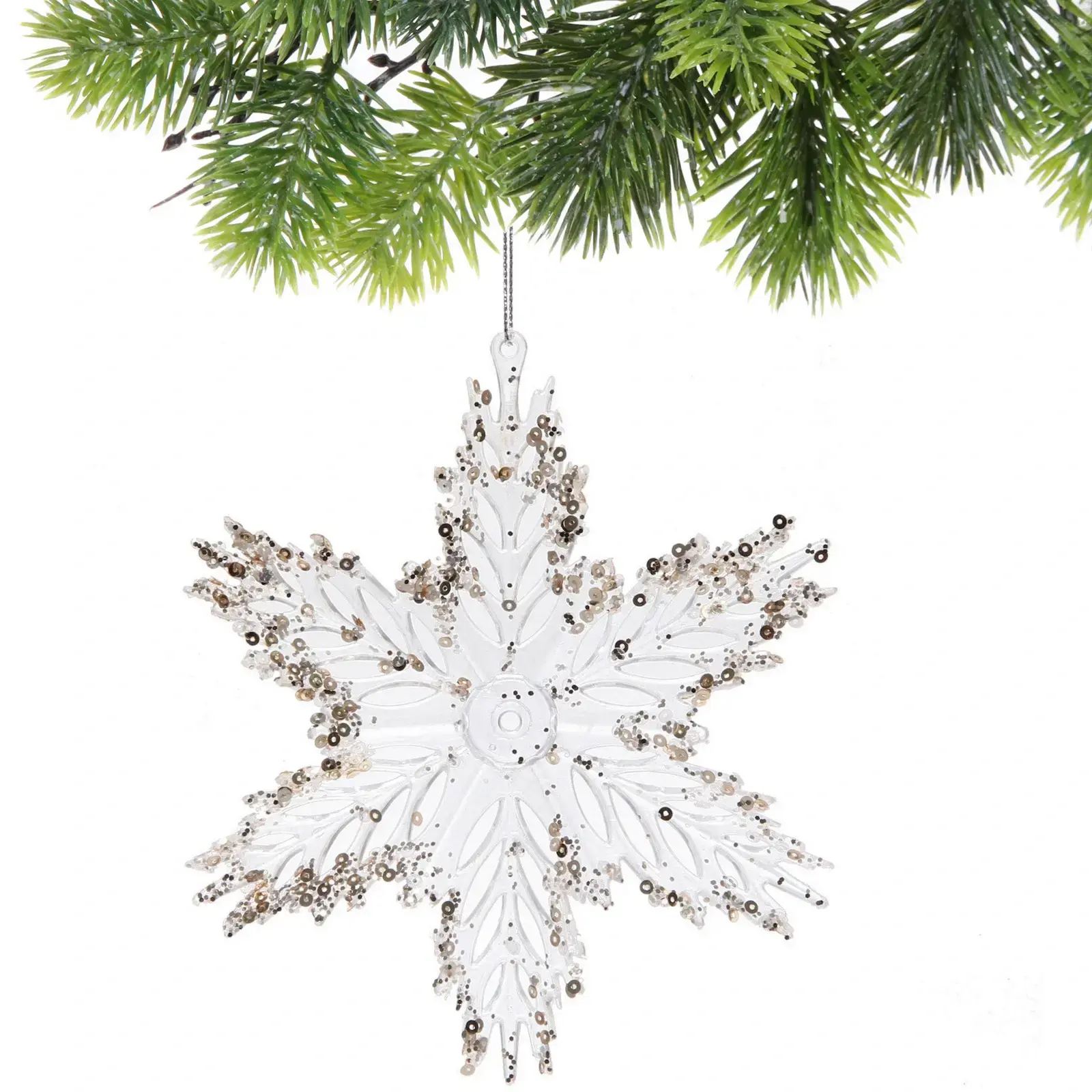 Создайте атмосферу волшебства и уюта в вашем доме с помощью подвески «Блестящая снежинка». Это украшение станет ярким акцентом в вашем новогоднем декоре, добавляя нотки элегантности и стиля. Снежинка выполнена из прозрачного пластика и украшена блестящими элементами, которые создают эффект сияния и легкости. Размер 15х13 см делает её универсальным элементом для украшения как ёлки, так и интерьера.