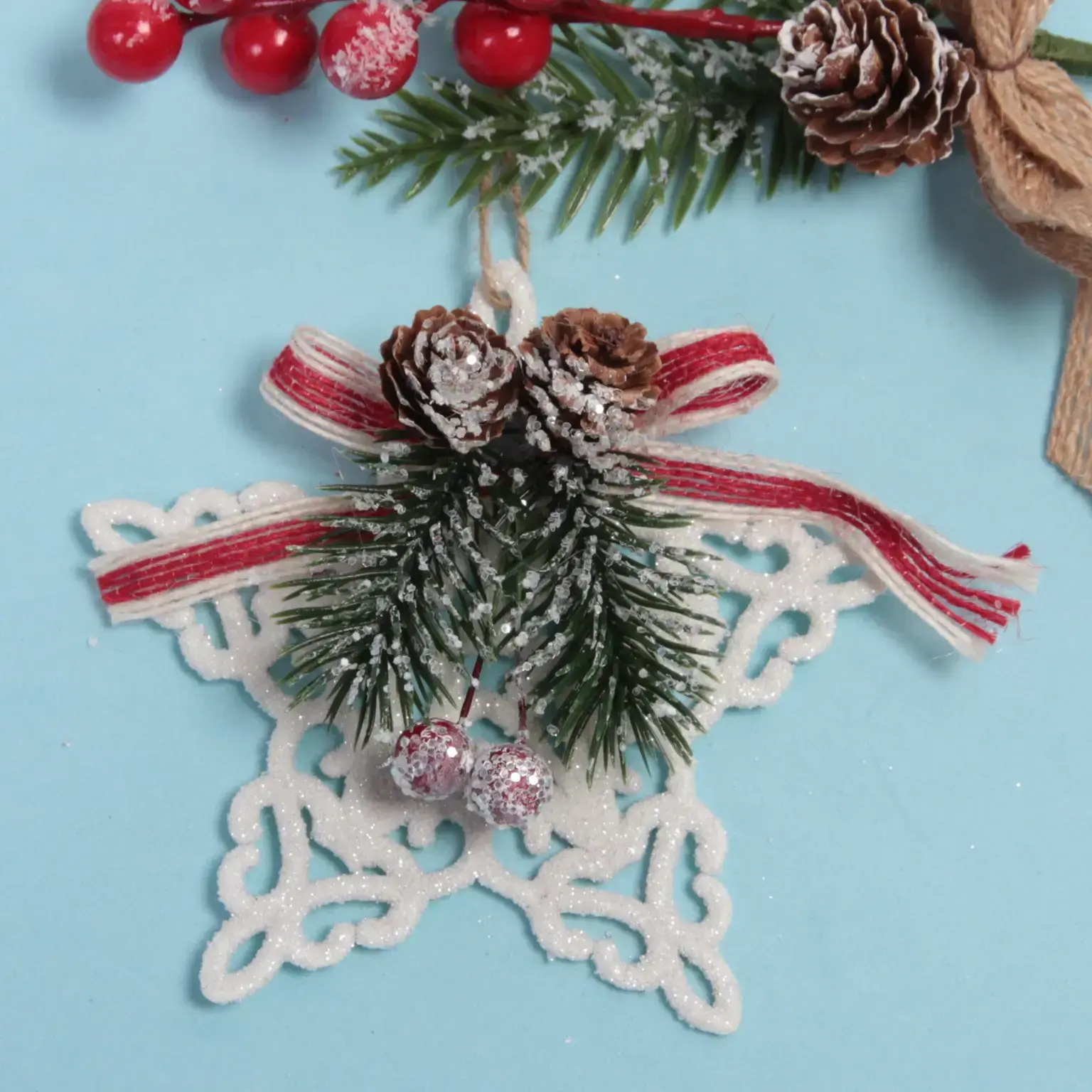 Создайте атмосферу волшебства и уюта в вашем доме с помощью этой изысканной подвески. Она станет ярким акцентом на вашей елке, добавляя нотки элегантности и стиля. Белый цвет и резные узоры делают это украшение универсальным для любого интерьера, а декоративные элементы, такие как шишки и красные ягодки, придают ему особый шарм.