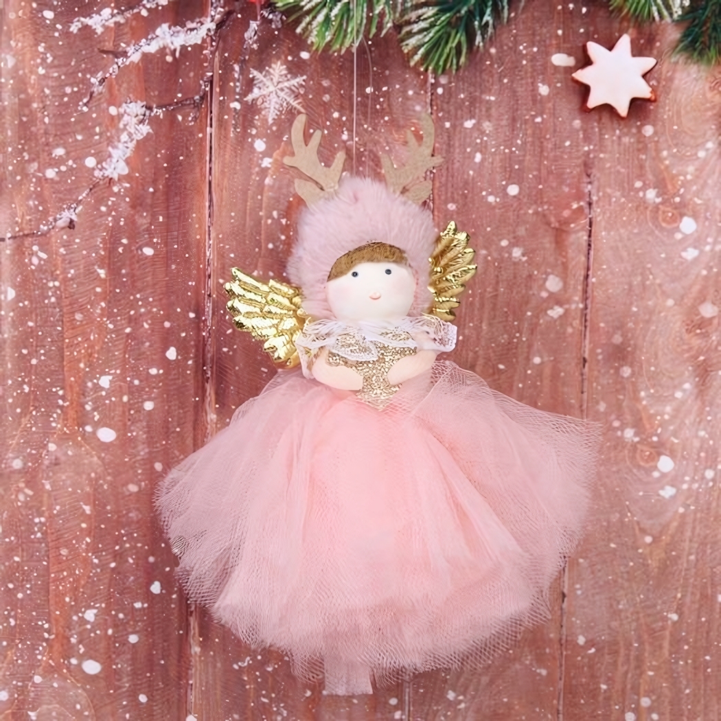 Эта изящная подвеска «Фея из сказки» превращает любой праздник в сказочное торжество: нежный розовый плащ из тюля, золотистые крылья и сияющая звезда в руках делают её центром внимания на новогодней ёлке или детском уголке.