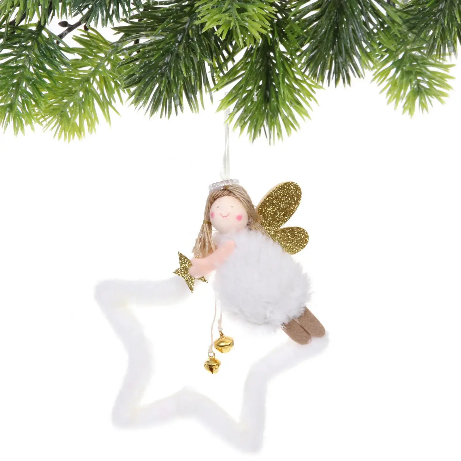 Подвеска идеально подходит для украшения новогодней ели, а также может быть использована для декорирования интерьера. Легкая и воздушная, она легко подвешивается благодаря атласной ленте, что позволяет разместить её в любом удобном месте. Фея с золотыми крыльями и звездой в руках станет любимым элементом как для детей, так и для взрослых.