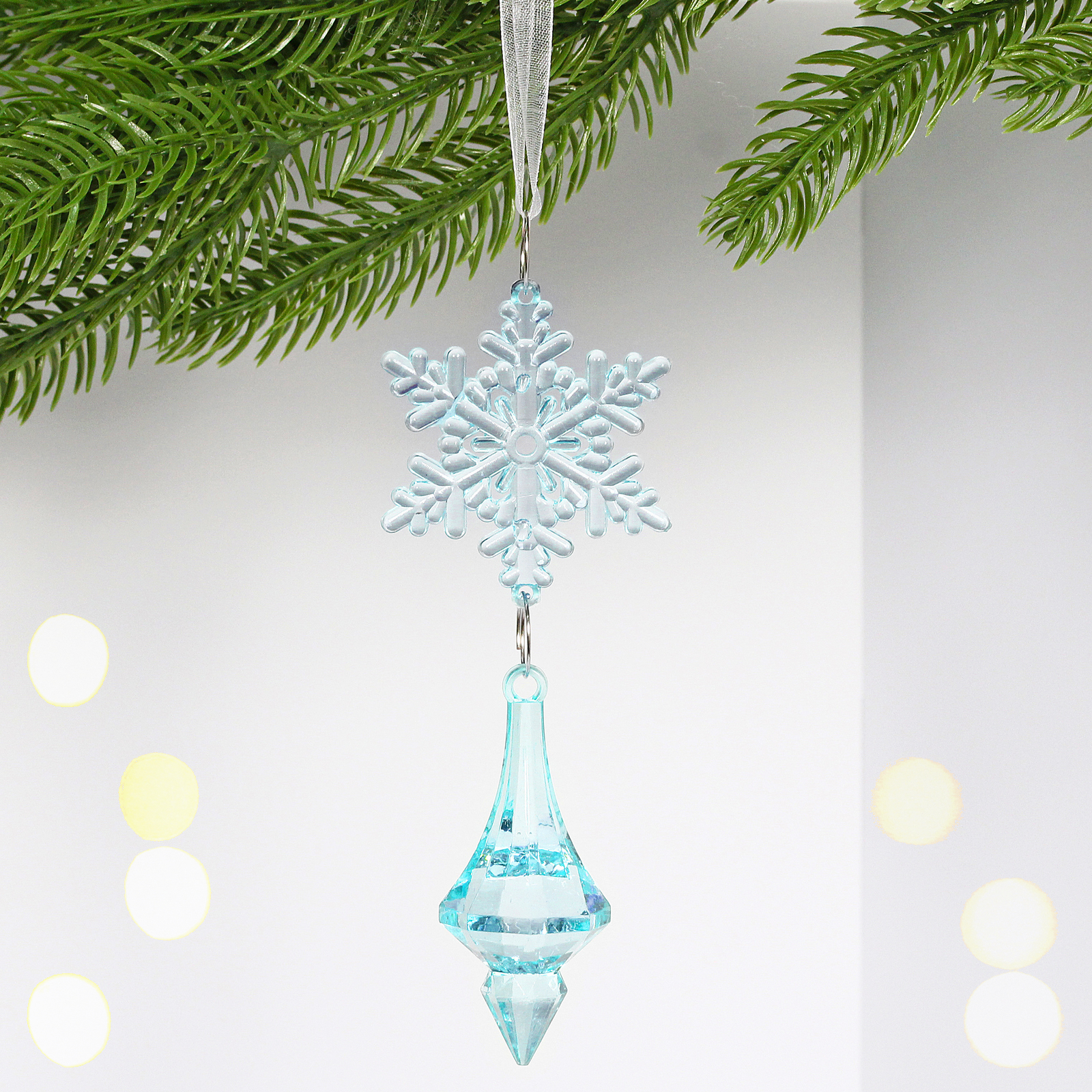 Благодаря высококачественному пластику с эффектом хрусталя, подвеска создаёт впечатление дорогого изделия при доступной цене. Голубой оттенок добавляет нежности и свежести в праздничный декор.