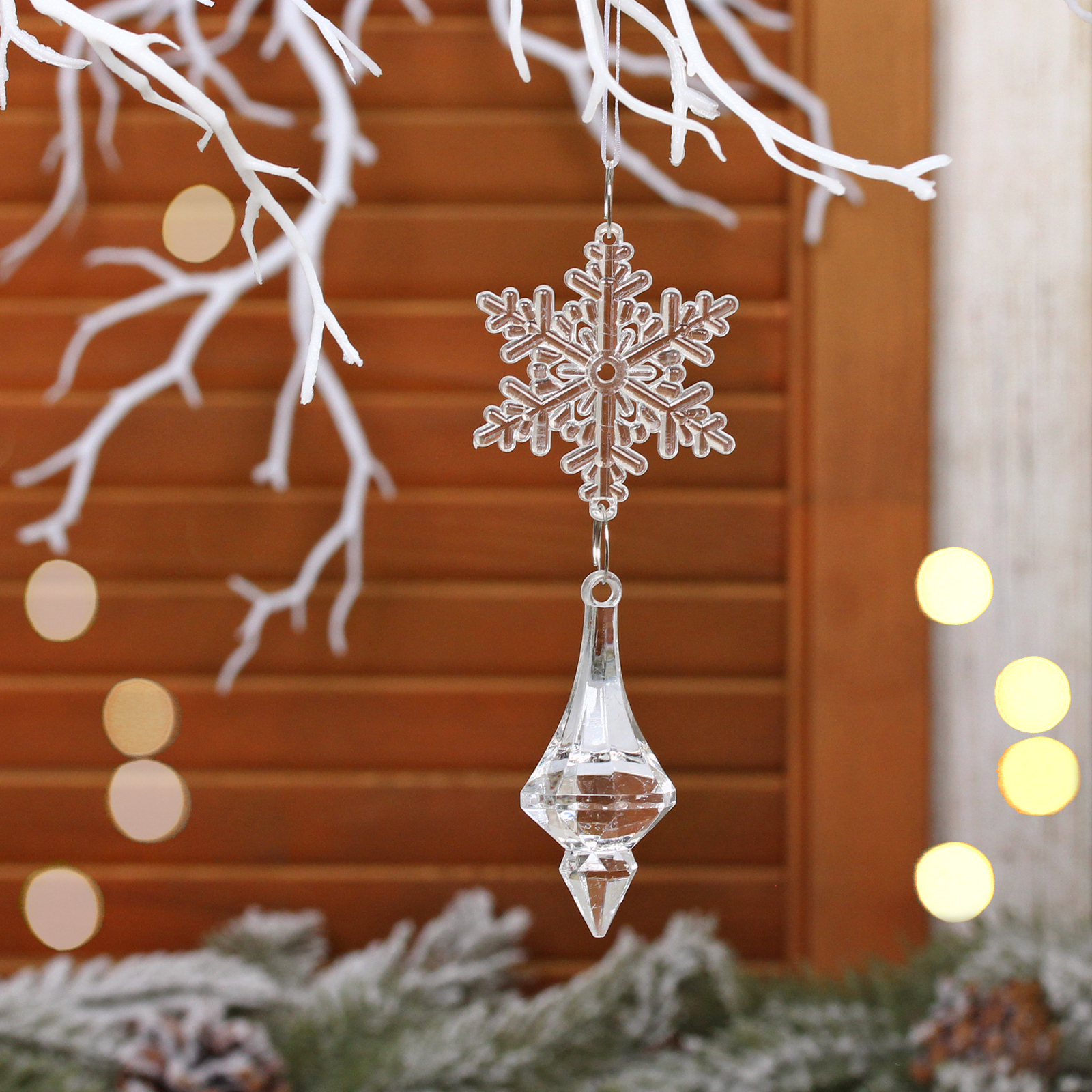 Подвеска "Хрустальная снежинка" 13см, прозрачная, для новогоднего декора
