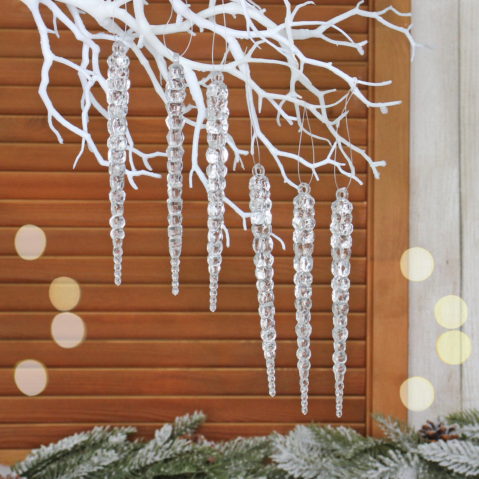 Украшение отлично подходит для создания праздничных композиций, размещения на ветках, гирляндах или декоративных ветках в интерьере. Каждая сосулька имеет отверстие в верхней части для удобства подвешивания, что позволяет легко использовать их в разных декоративных решениях.