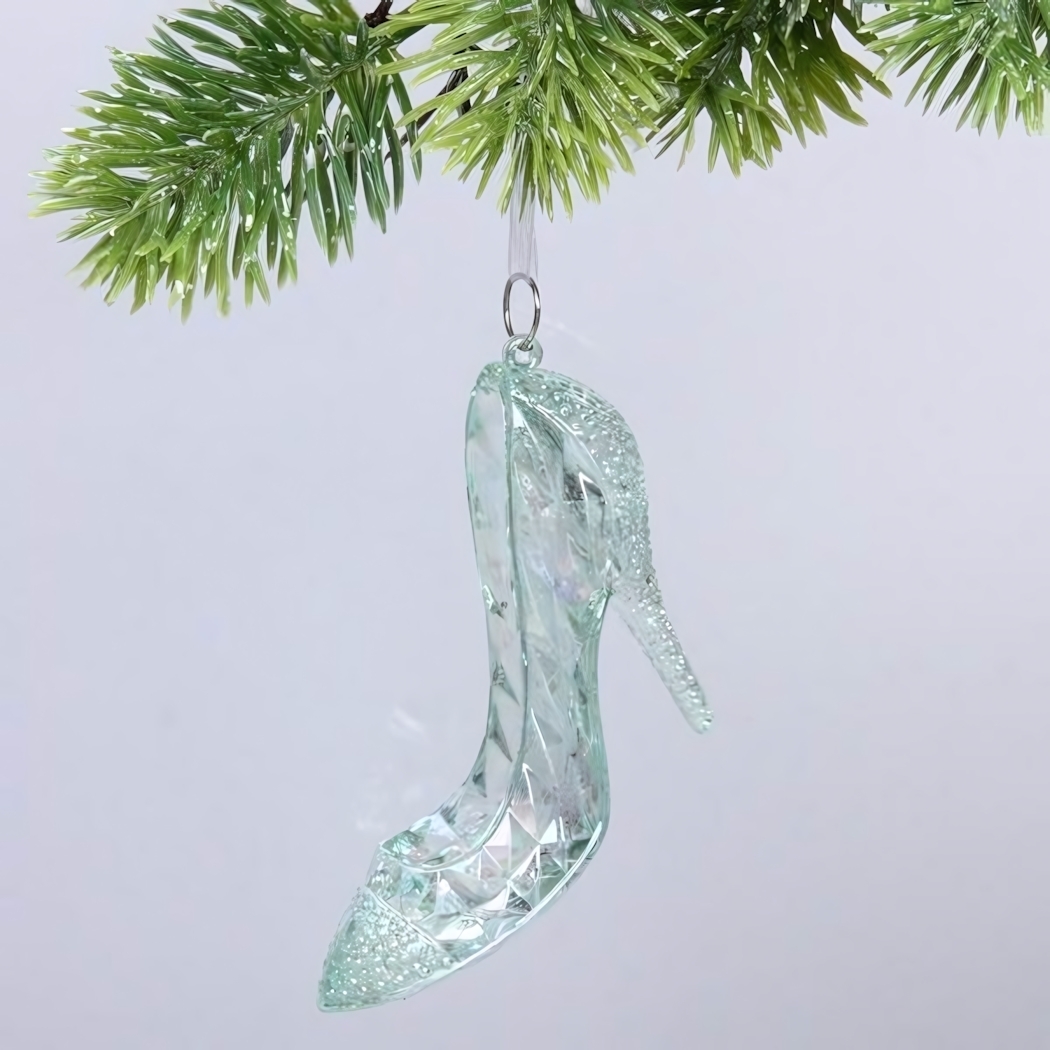 Подвеска «Хрустальная туфелька» добавит яркий блеск и волшебство к любой новогодней композиции. Ее изысканный дизайн в виде стеклянной туфельки на высоком каблуке привлекает взгляды и создает атмосферу праздника, делая ваш интерьер особенным.