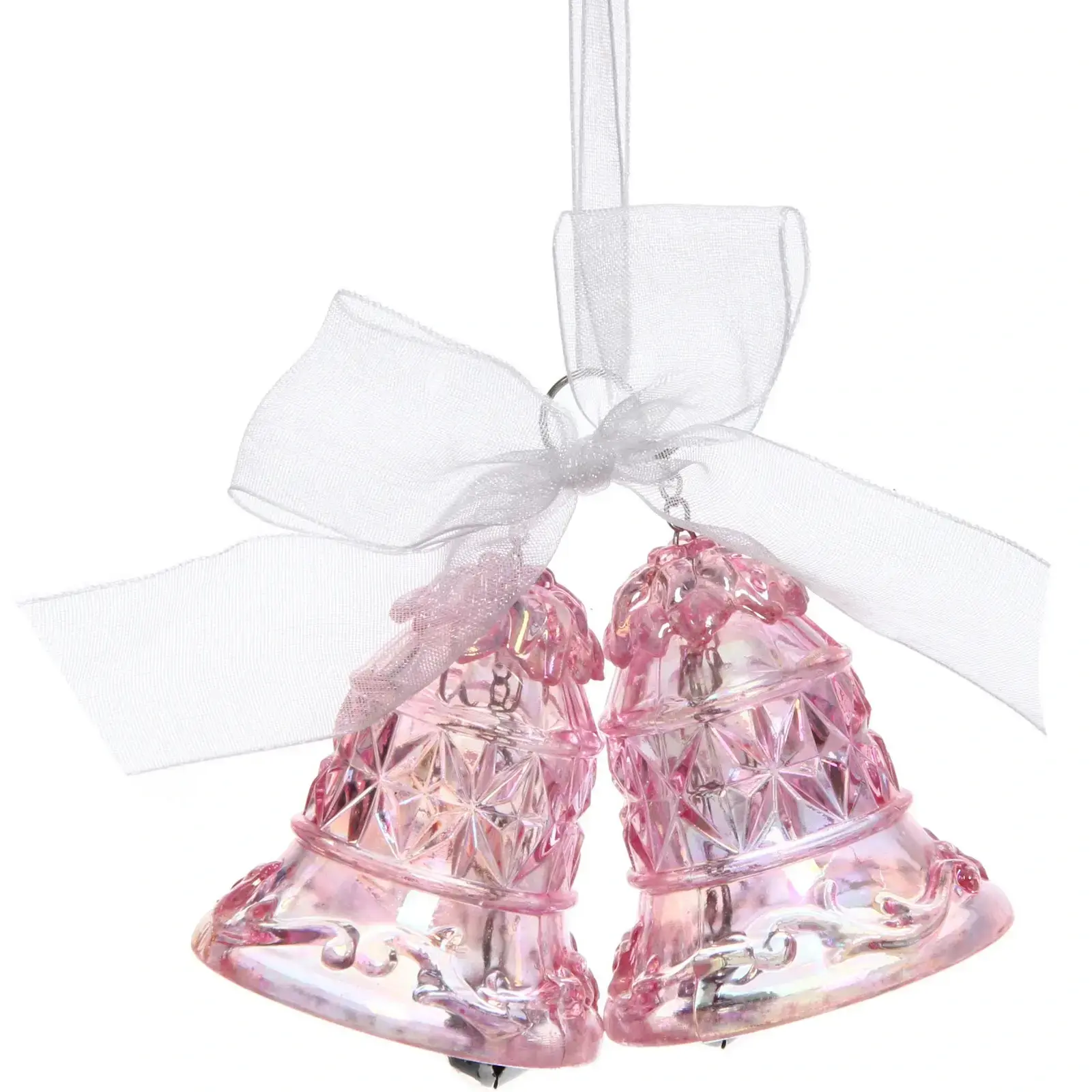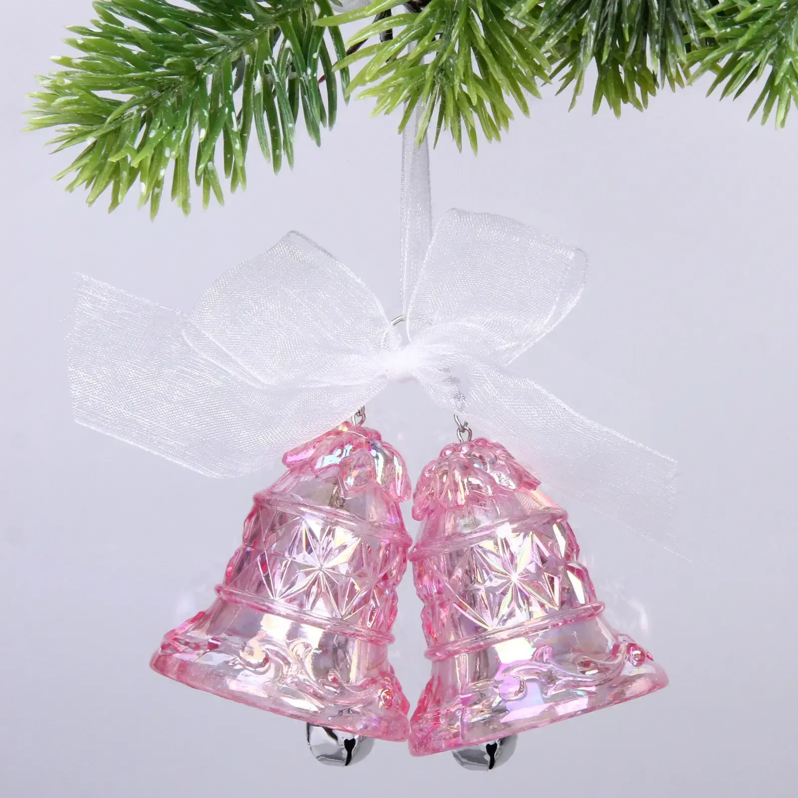 Создайте атмосферу праздника с подвеской «Хрустальные колокольчики». Эти изящные колокольчики, выполненные из прозрачного розового материала, добавят нотку волшебства в ваш интерьер. Их классическая форма и рельефные узоры делают их не только красивыми, но и стильными элементами декора, которые подойдут для любого праздника.