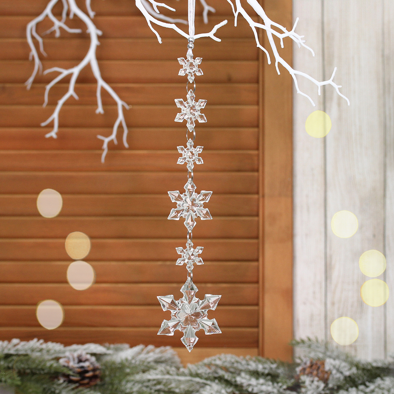Подвеска 'Хрустальные снежинки' 26см, прозрачные, пластиковые