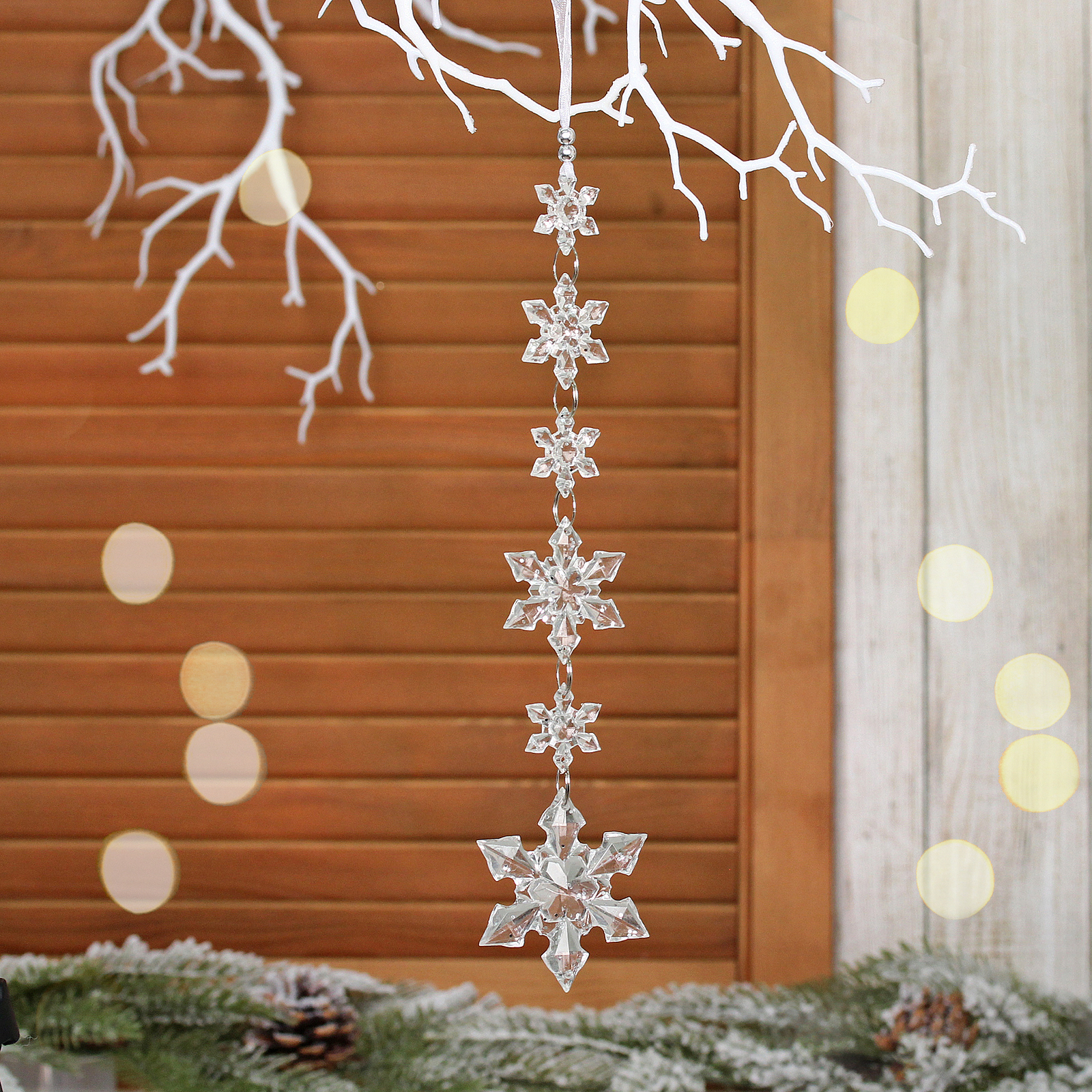 Подвеска 'Хрустальные снежинки' 26см, прозрачный пластик, эффект свечения