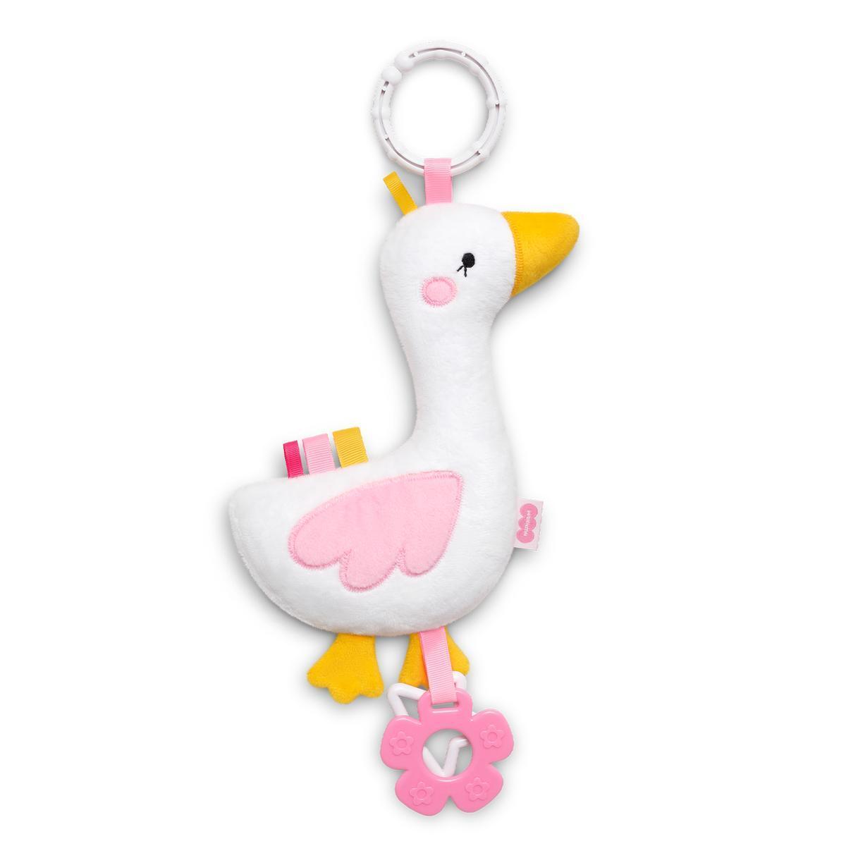Подвеска развивающая "Хрустящий Гусь", шуршащая игрушка с прорезывателем, бело-розово-желтая, Мякиши