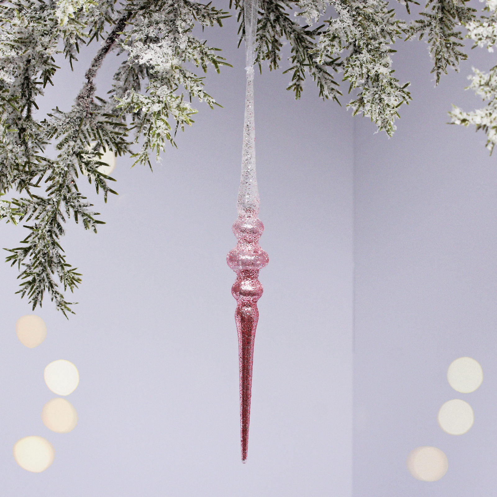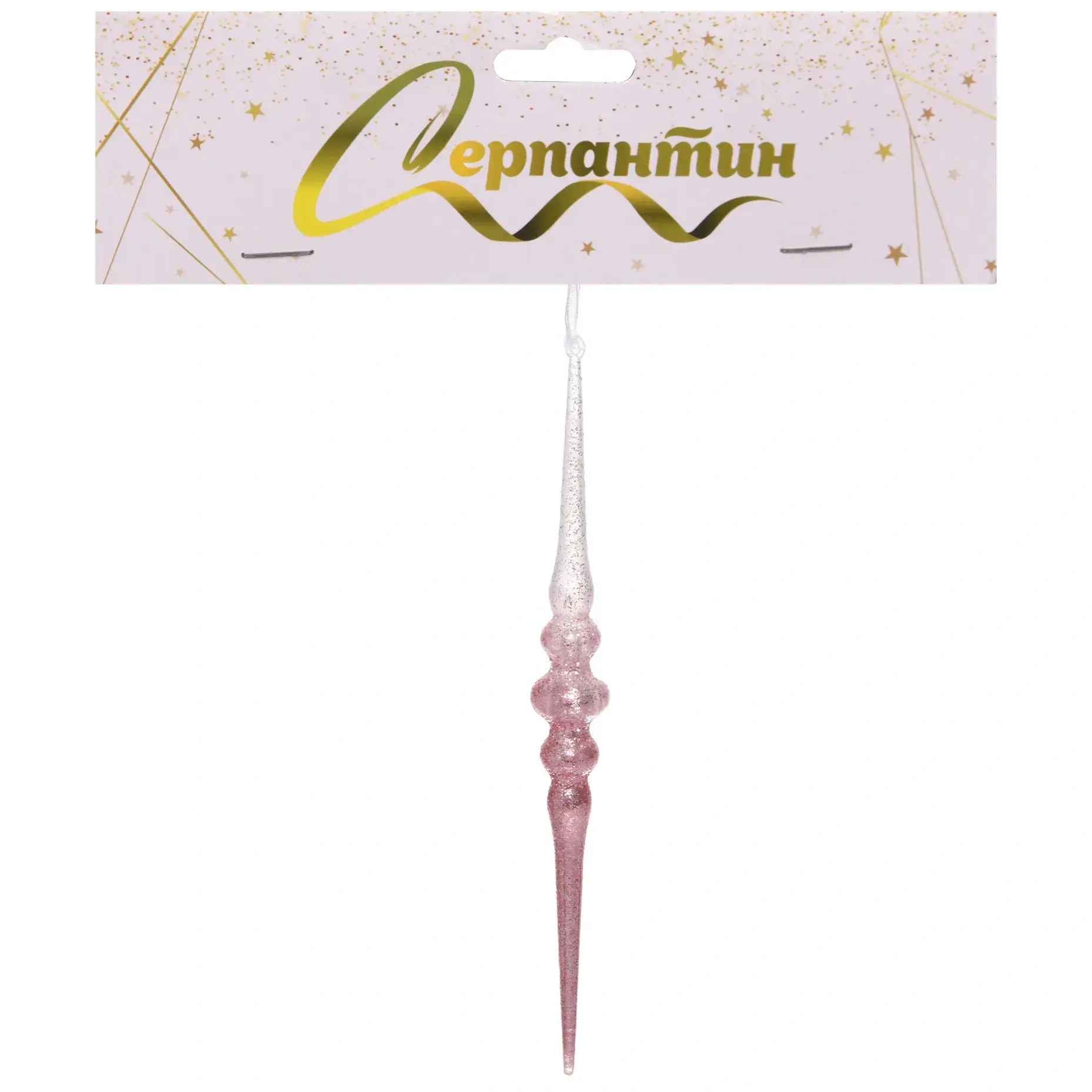 Подвеска 'Искристая сосулька' 12см, градиент белый/розовый, с блестками