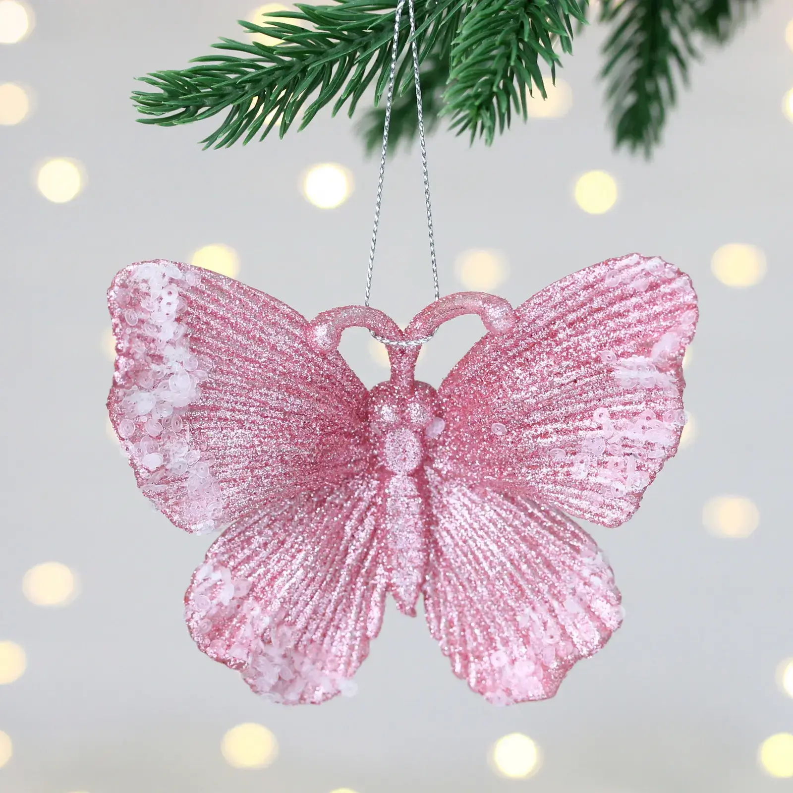 Декоративная подвеска "Изящная бабочка" станет ярким акцентом в оформлении вашего дома или праздничного интерьера. Благодаря розовому цвету с мерцающей блестящей поверхностью, она создает нежную и уютную атмосферу.