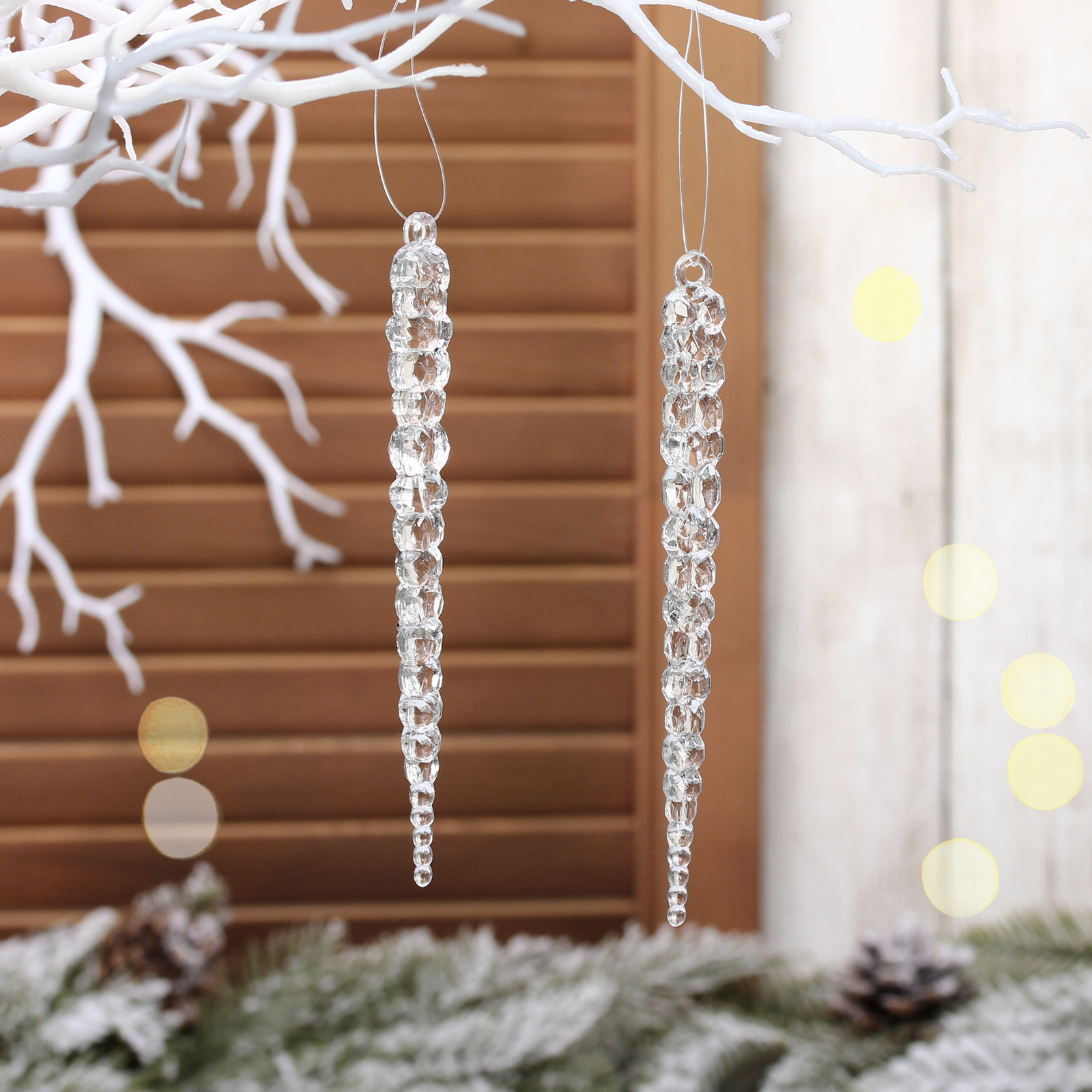 Добавьте волшебного блеска вашему новогоднему оформлению с помощью прозрачных подвесок 'Изящная сосулька'. Их элегантная форма и способность преломлять свет создают неповторимую атмосферу праздника.