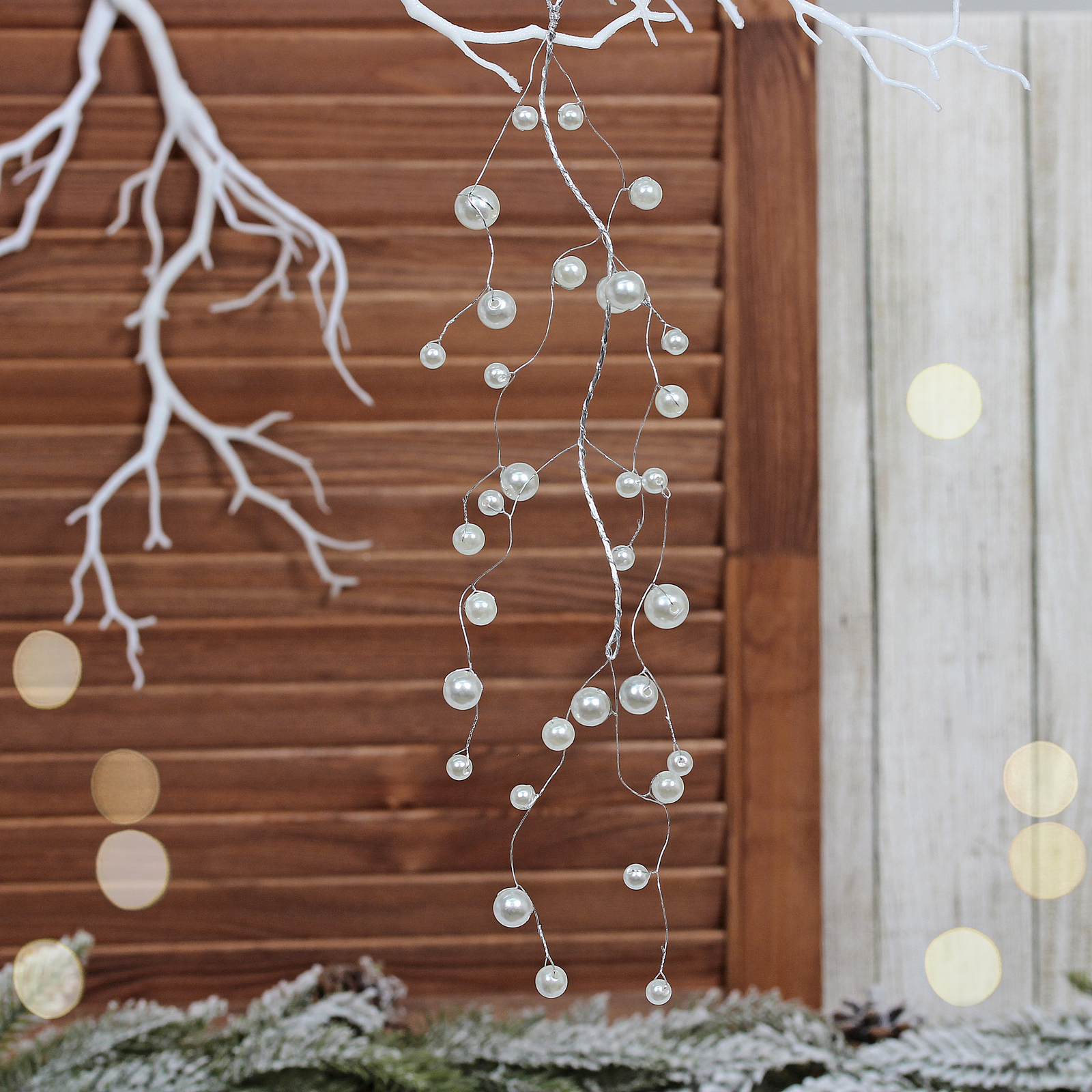 Подвеска ёлочная декоративная "Изящный жемчуг", 22см, белый, для новогоднего декора