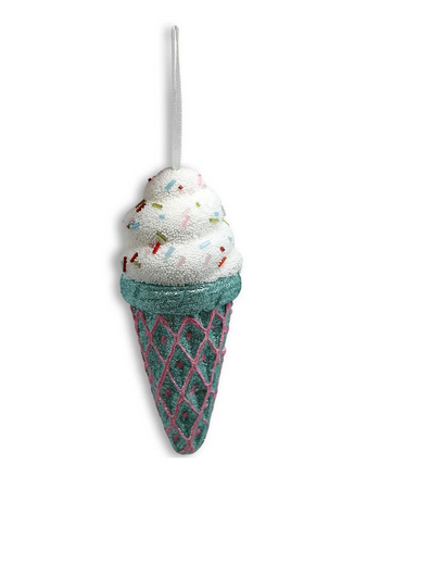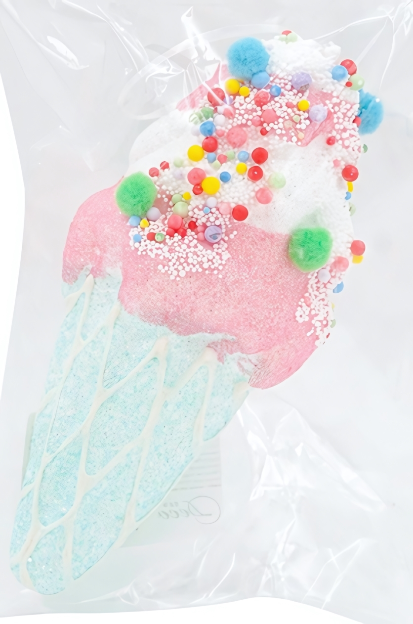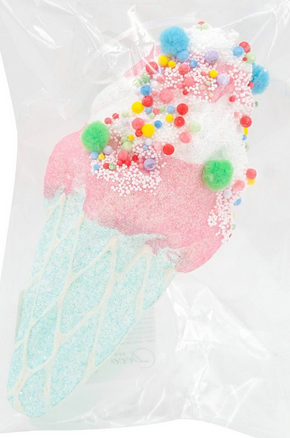 Оригинальная подвеска в форме аппетитного мороженого в вафельном рожке станет эффектным украшением вашей ёлки или праздничного интерьера. Необычный дизайн, блестящие детали и яркие цвета создают атмосферу веселья и добавляют уюта в дом. Идеальное решение, чтобы подчеркнуть индивидуальность декора и удивить гостей.