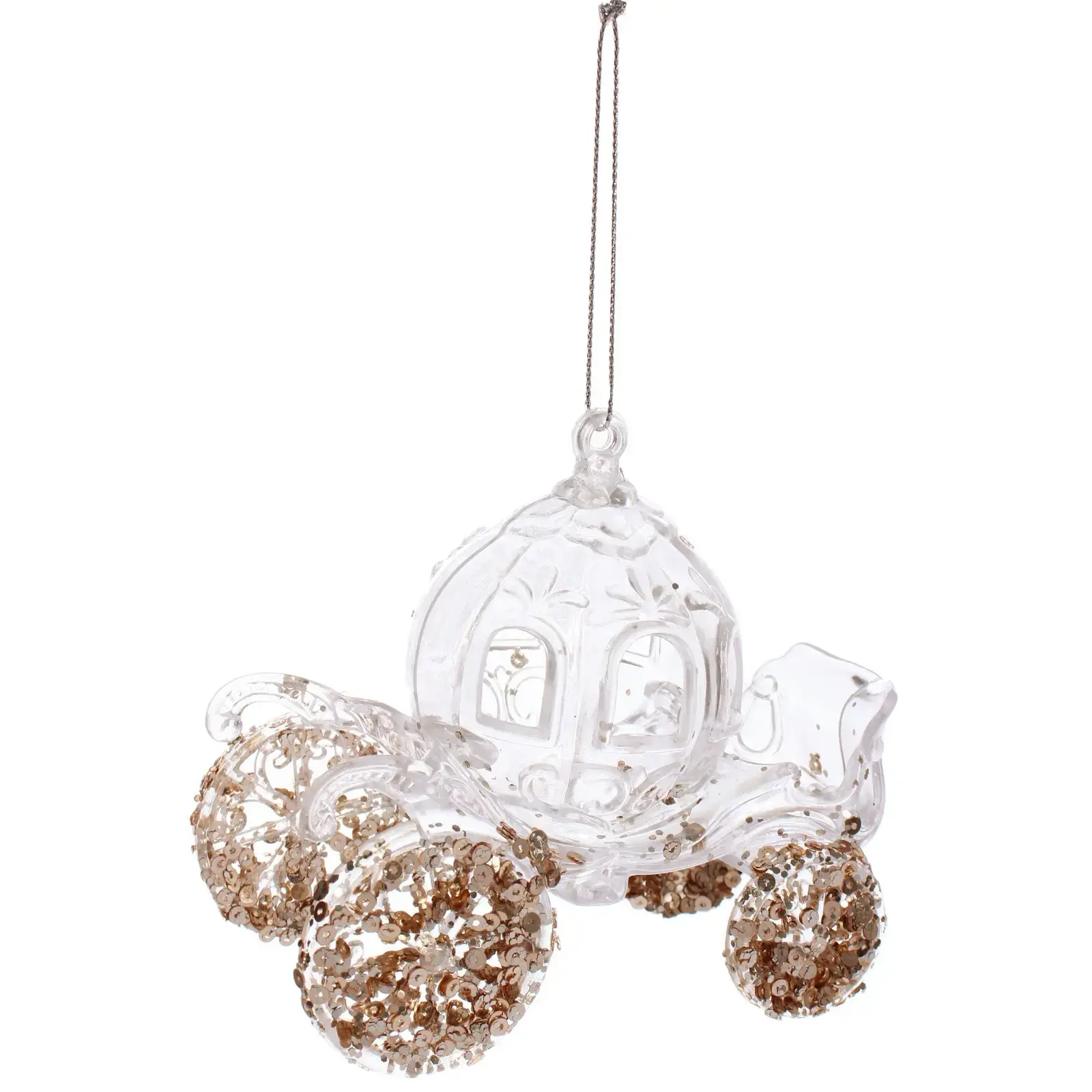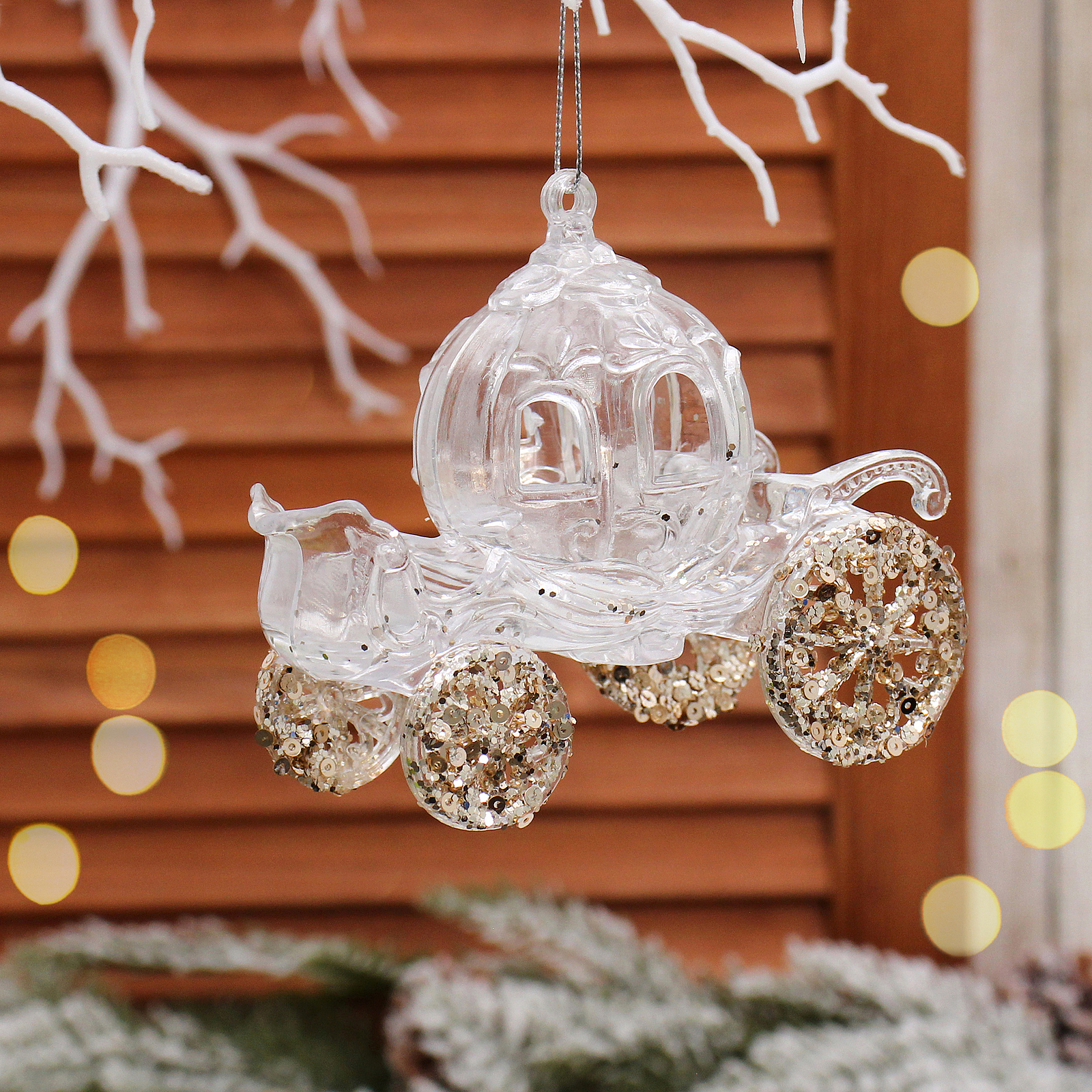 Подвеска 'Королевская карета' 10*11см, прозрачная/золотой блеск, для новогоднего декора