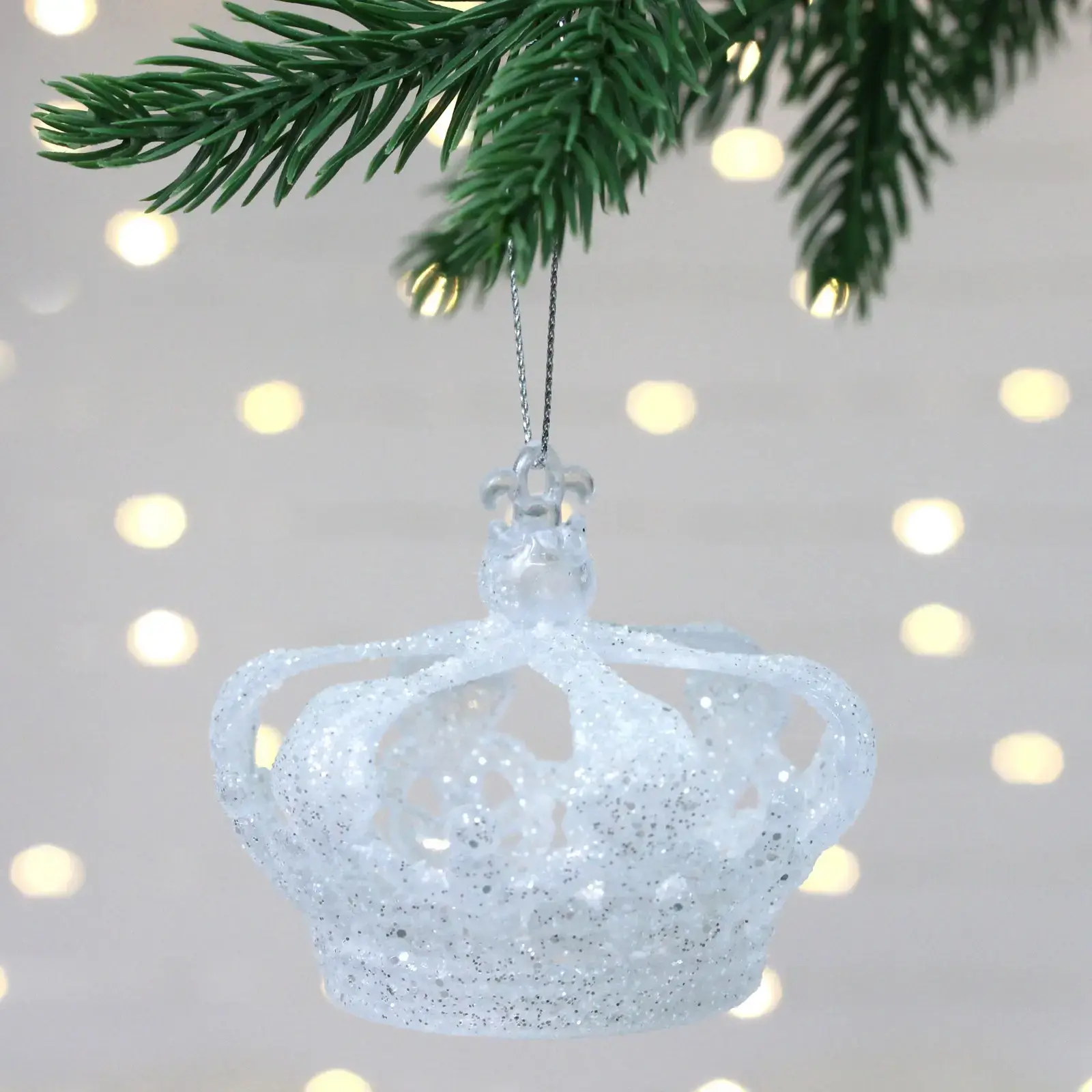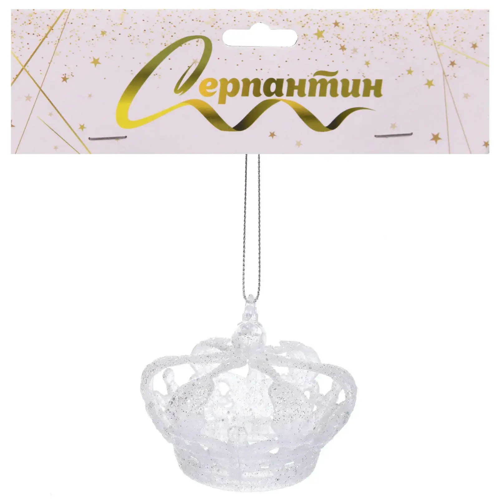 Подвеска «Корона» 8*5 см, прозрачный/белый, пластик, для новогоднего декора