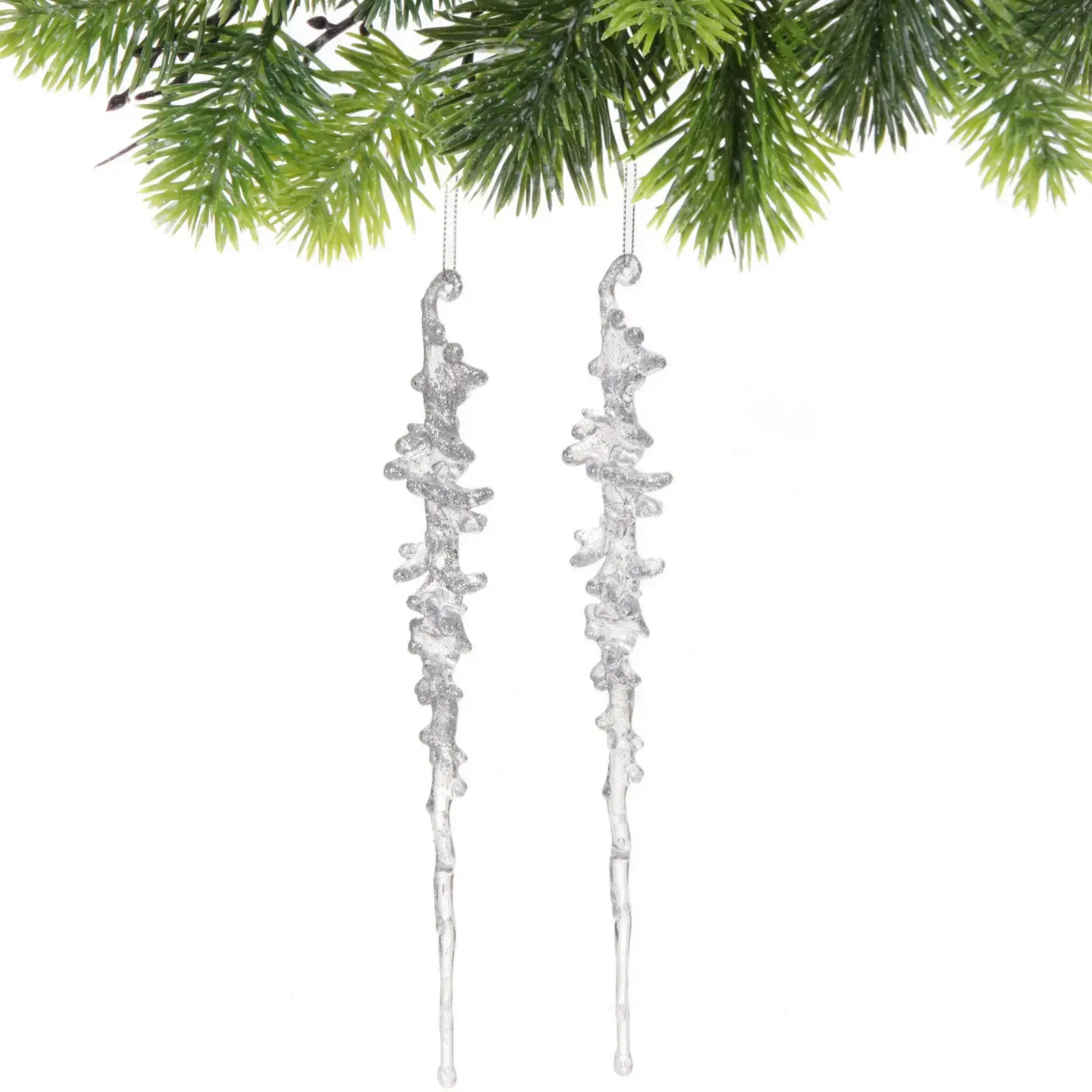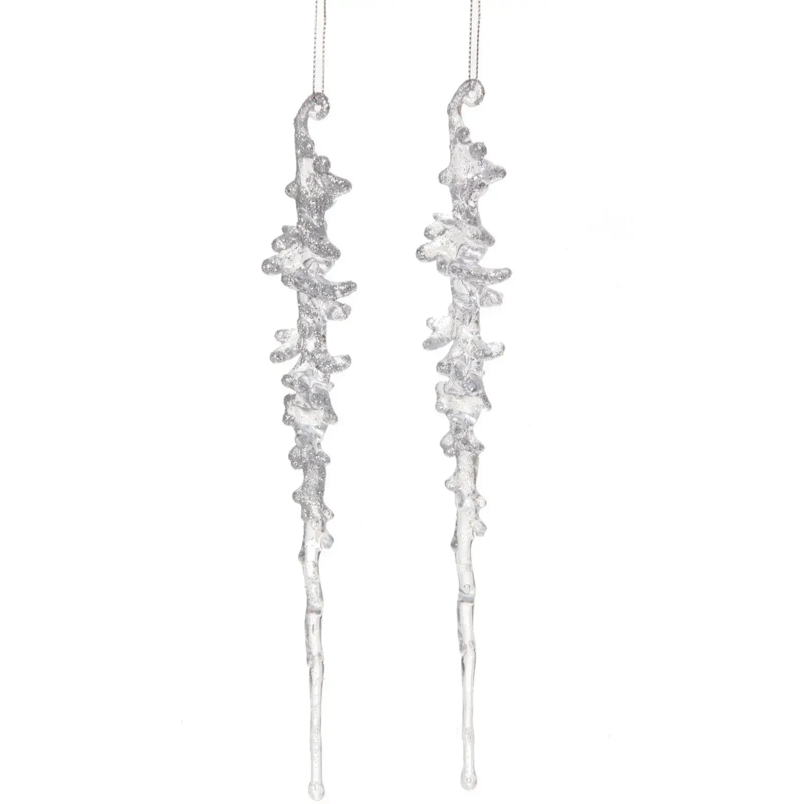 Каждая подвеска имеет длину 26 см и выполнена из качественного пластика, что обеспечивает долговечность и устойчивость к повреждениям. Серебристый цвет и рельефная поверхность придают им уникальный вид, а набор из 2 штук позволяет создать гармоничное оформление. Эти подвески станут отличным подарком для ваших близких или прекрасным дополнением к вашему праздничному декору.