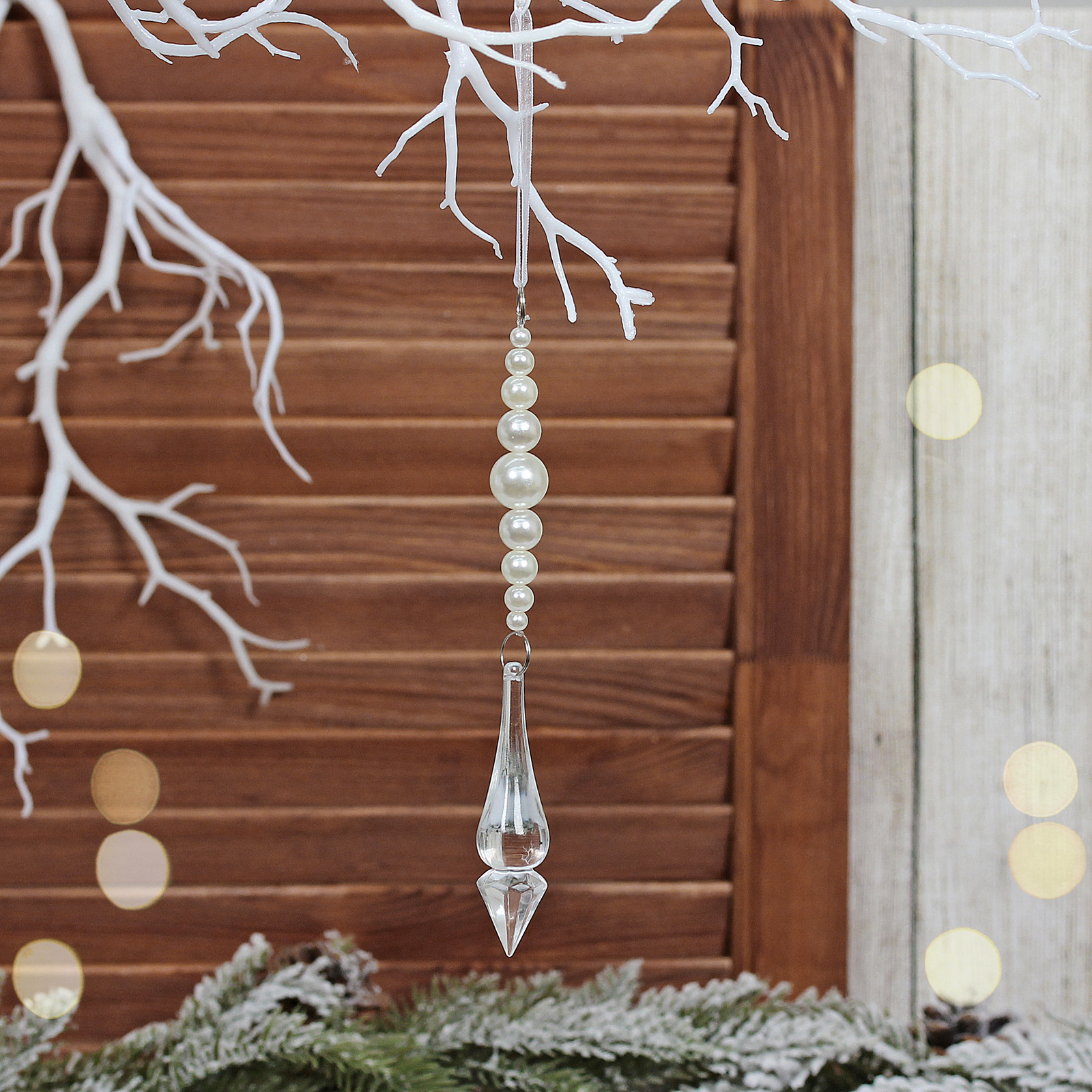 Подвеска декоративная 'Ледяная ночь' 18см, белый жемчуг и прозрачная капля, пластик