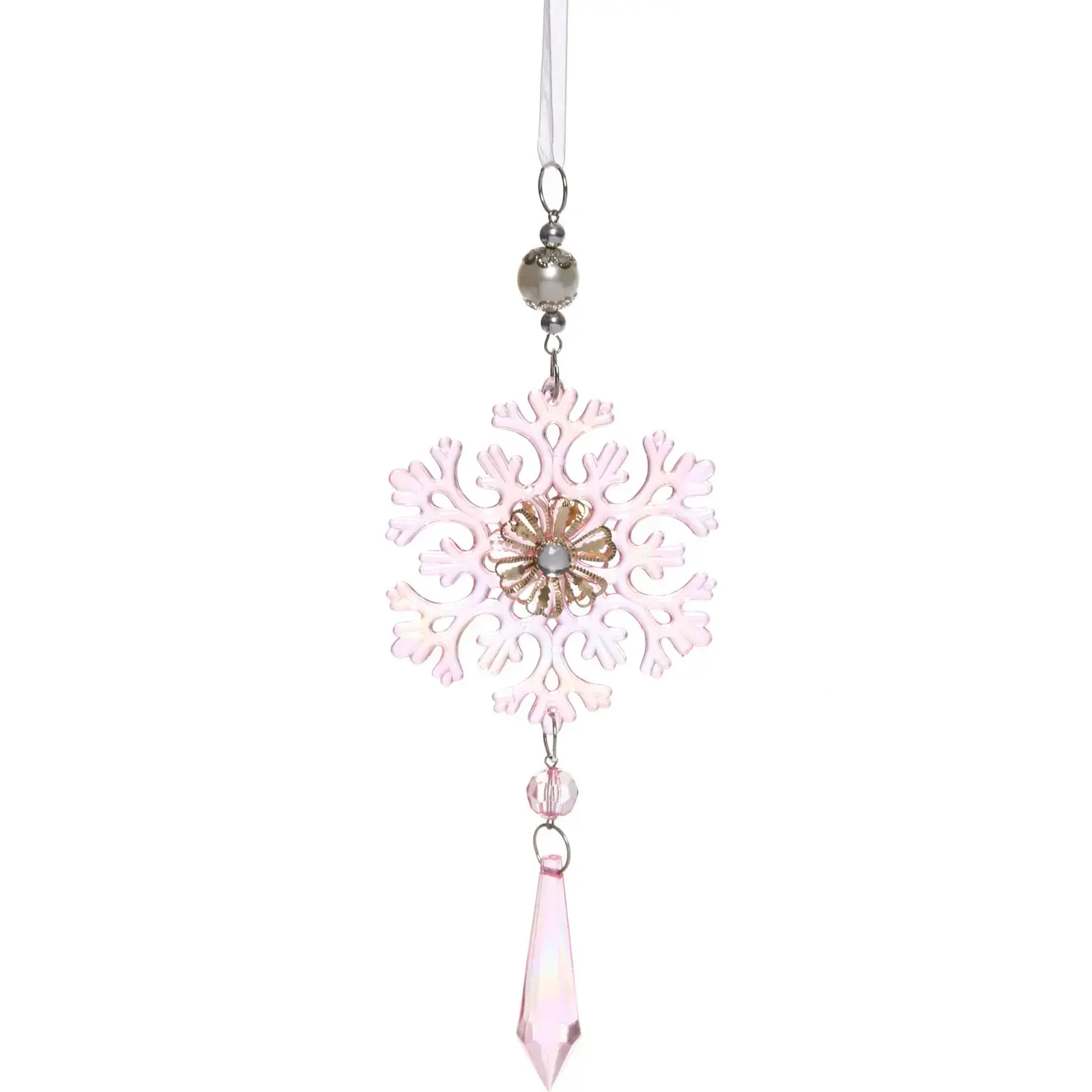 Создайте атмосферу волшебства и уюта с подвеской «Ледяная снежинка». Этот изящный элемент декора выполнен в светло-розовом цвете и станет прекрасным дополнением к вашему новогоднему оформлению. Снежинка, размером 8,5*20 см, привнесет в ваш интерьер нотки нежности и стиля.