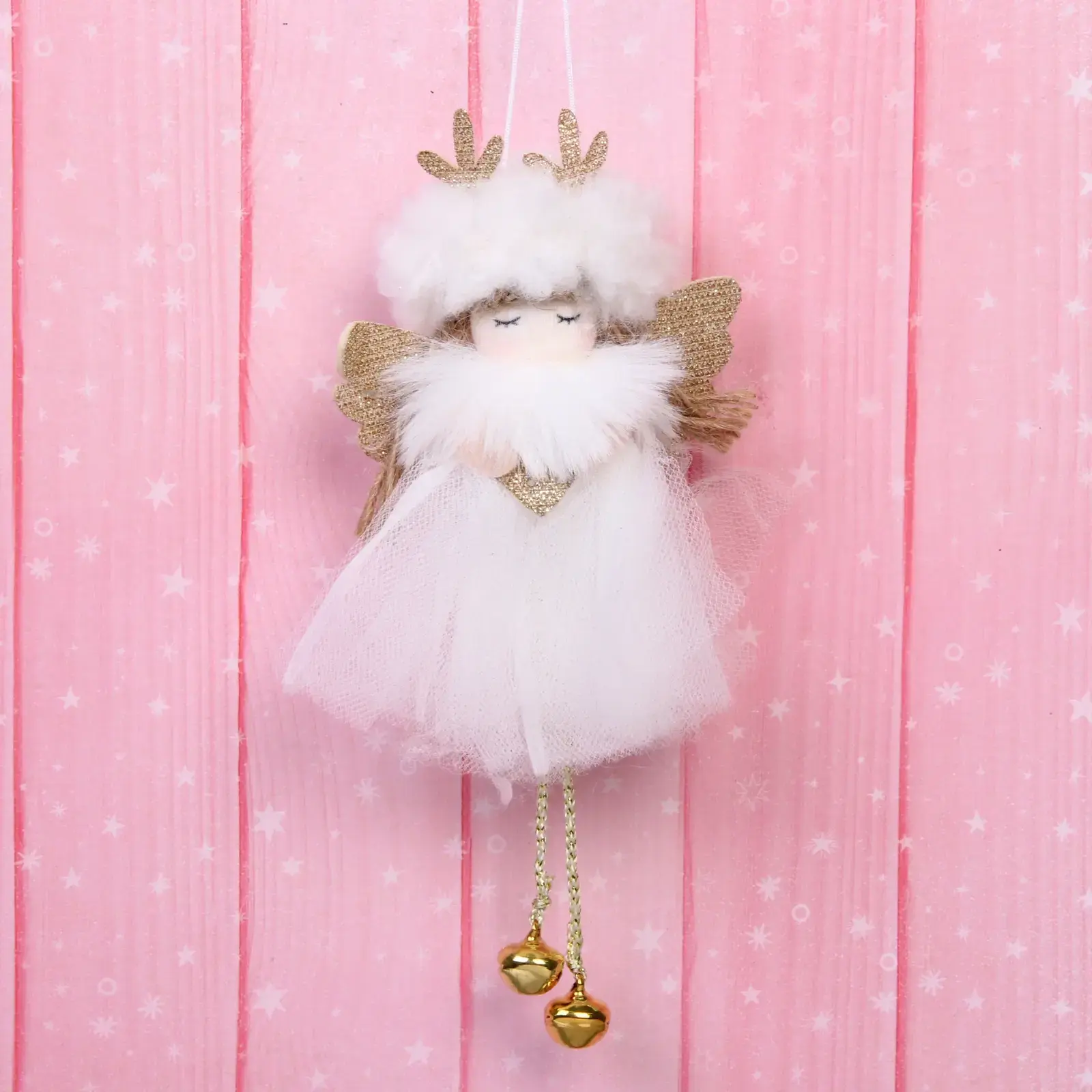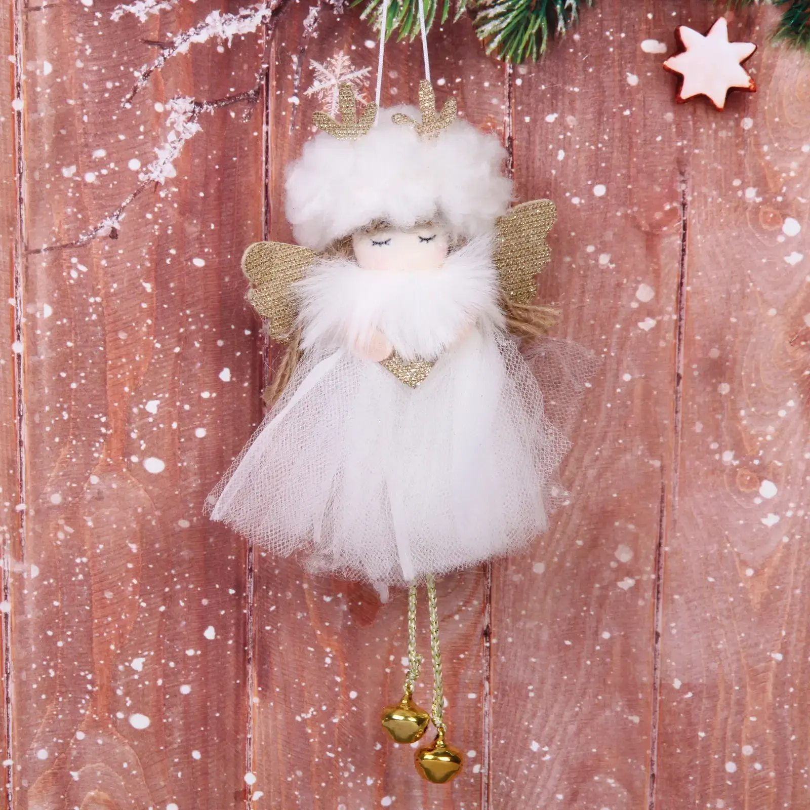 Эта фигурка выполнена из качественных материалов: пластика и текстиля, что обеспечивает ее долговечность и устойчивость к повреждениям. Нежные золотистые акценты и детализированное оформление делают ее не только красивой, но и стильной. Подвеска станет отличным подарком для ваших близких, добавив в их дом атмосферу праздника.