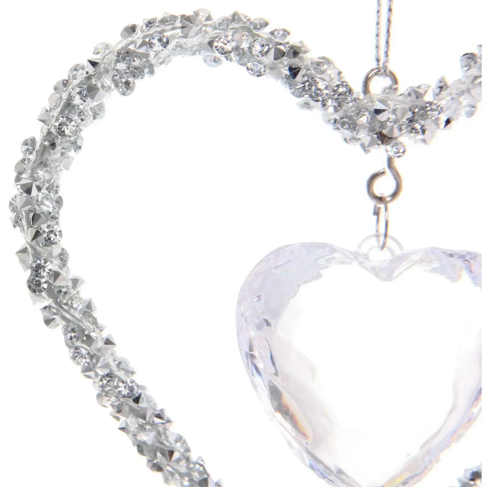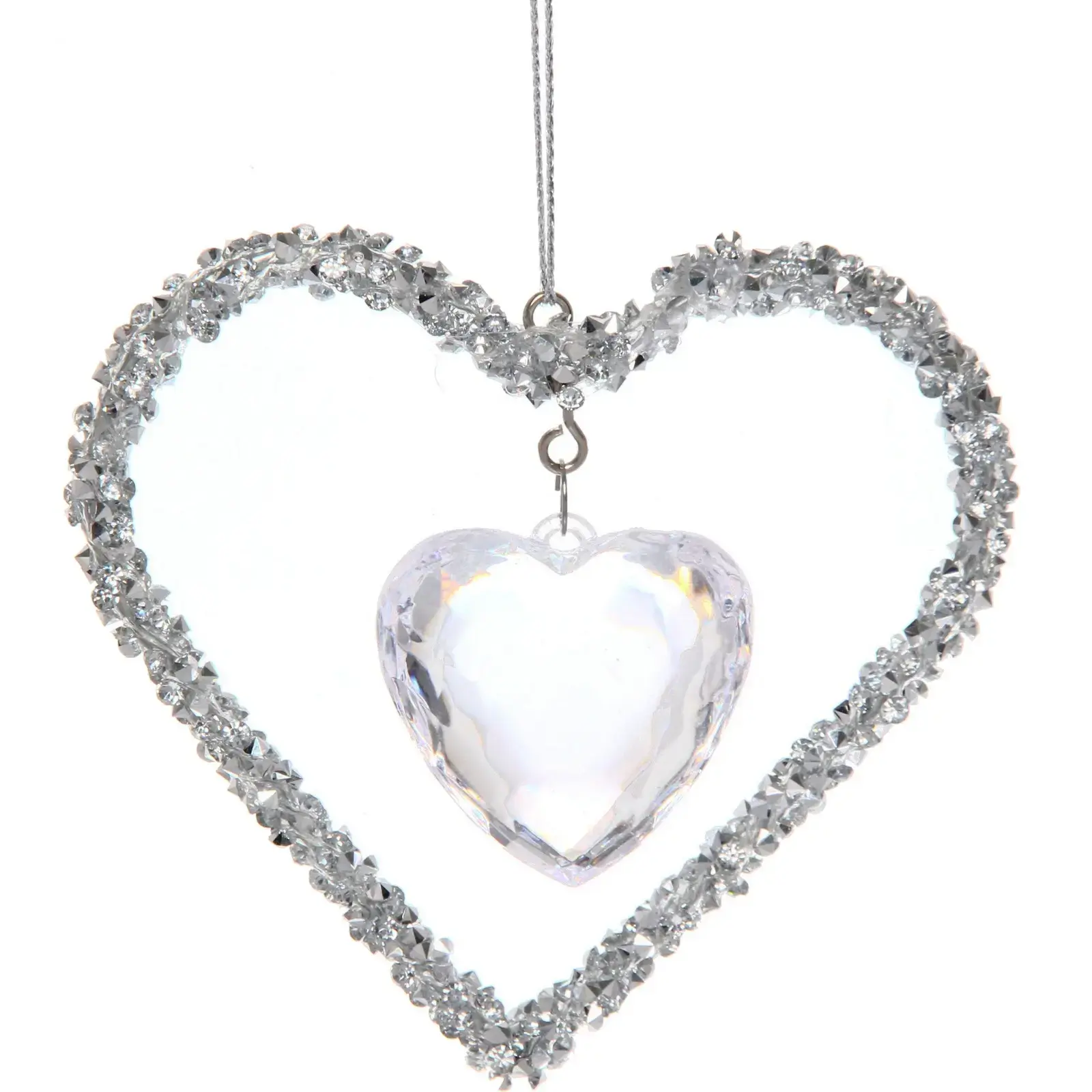 Подвеска декоративная "Мерцающее сердце" 9*10см, серебристая рамка с кристаллом
