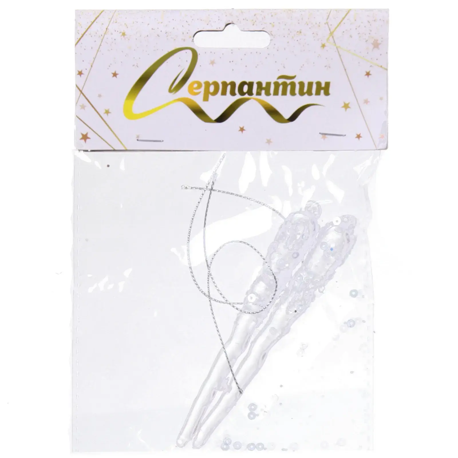 Каждая подвеска имеет длину 10 см и выполнена в белом цвете с перламутровыми вкраплениями. Они упакованы в комплекте по 2 штуки, что позволяет вам сразу украсить несколько мест. Эти украшения станут отличным дополнением к вашему новогоднему декору и создадут атмосферу праздника в вашем доме.