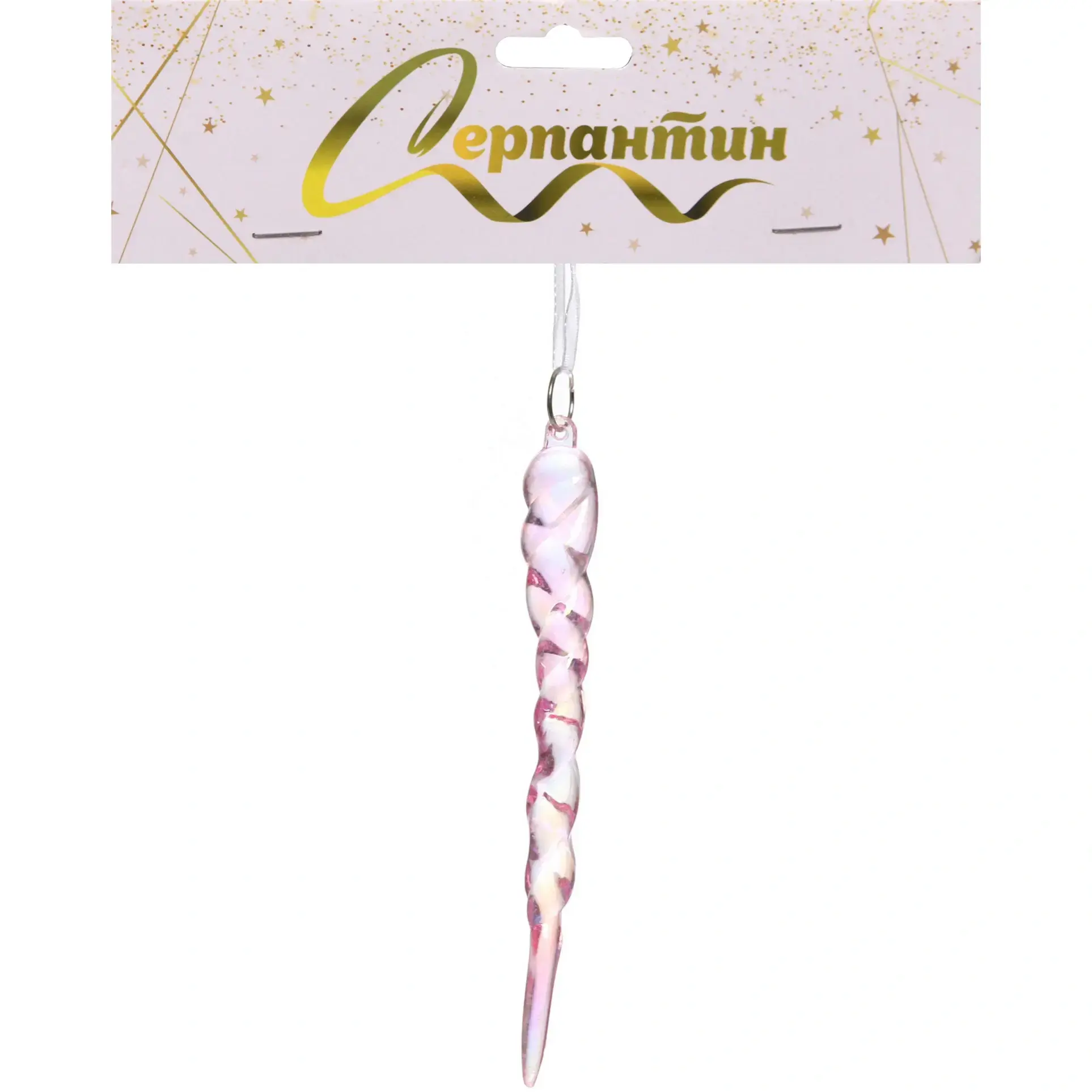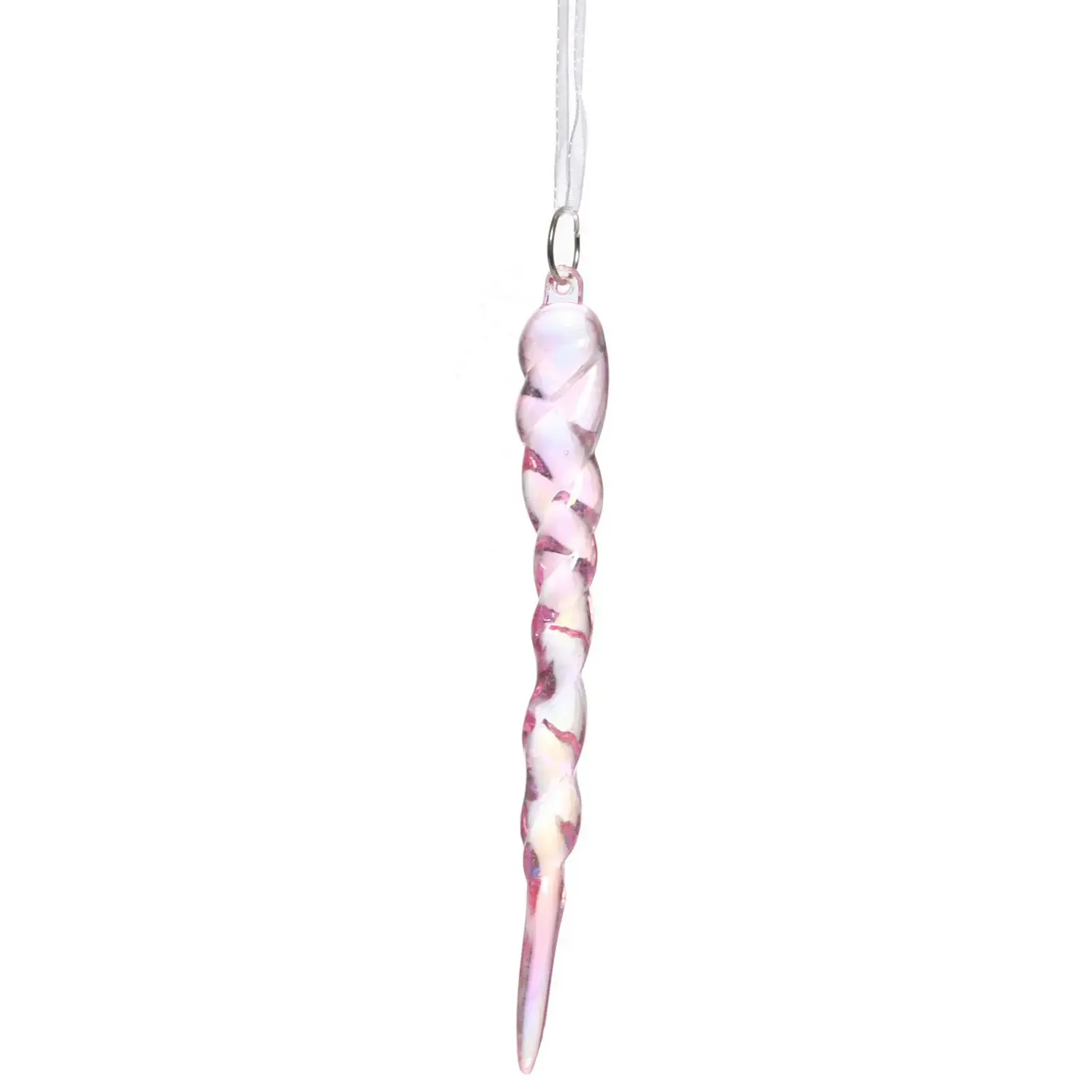 Эта изысканная подвеска в форме сосульки станет идеальным украшением для вашей новогодней ёлки. С её помощью вы сможете добавить нотку уюта и волшебства в праздничный декор. Нежный розовый цвет с перламутровым эффектом и спиралевидный узор делают её не только красивой, но и стильной деталью вашего интерьера.