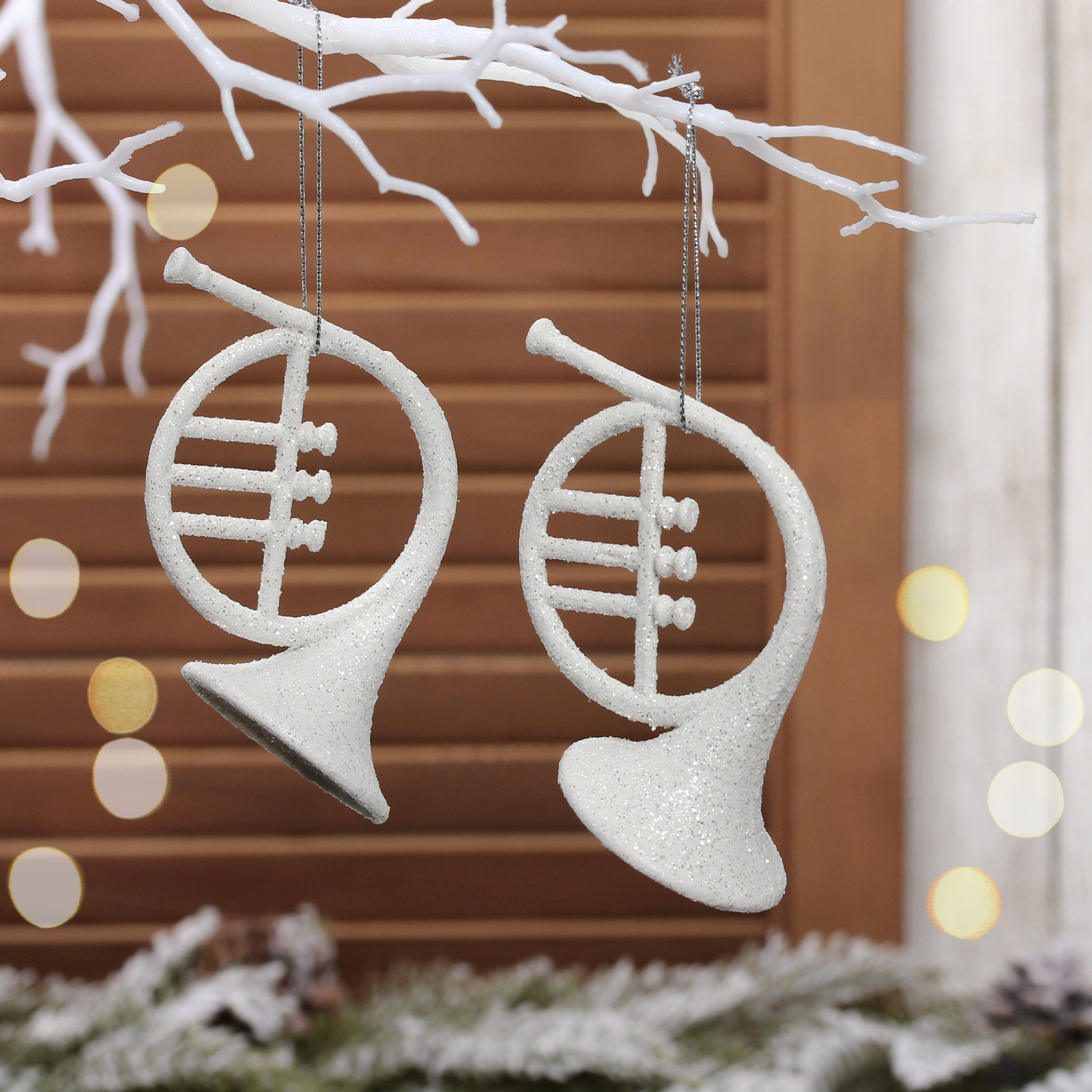 Стилизованные музыкальные рожки станут оригинальным акцентом в новогоднем оформлении дома, офиса или торгового зала. Благодаря нейтральной цветовой гамме гармонично сочетаются с любыми типами декора — от классических золотых шаров до современных LED-конструкций.