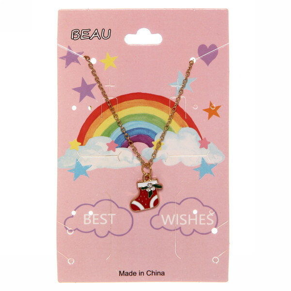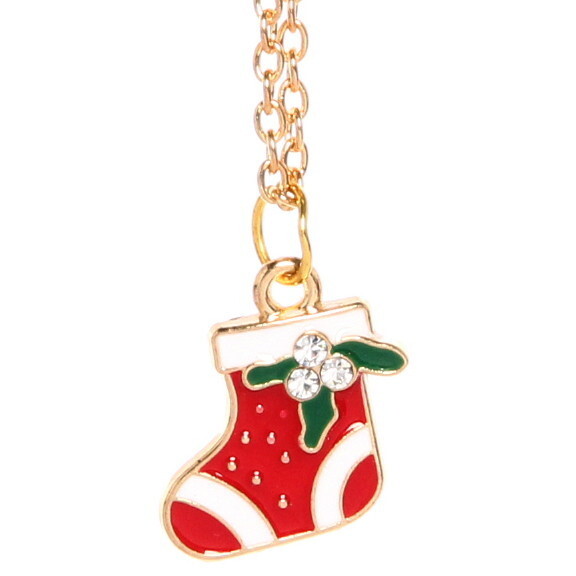 Яркая подвеска в виде традиционного рождественского чулка станет эффектным акцентом в вашем праздничном образе. Сочетание классических красных, белых и зеленых оттенков с блестящими элементами создаёт атмосферу волшебства, а компактные размеры делают украшение удобным для ежедневного ношения.