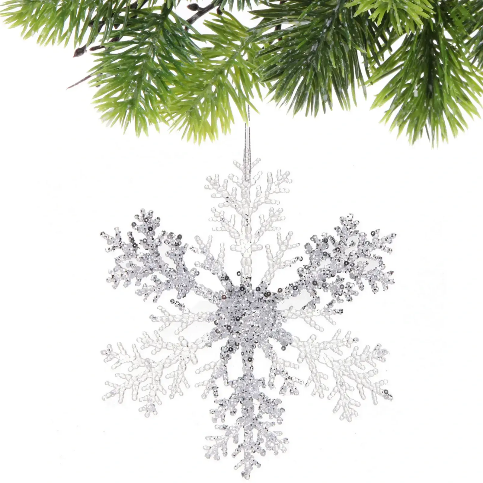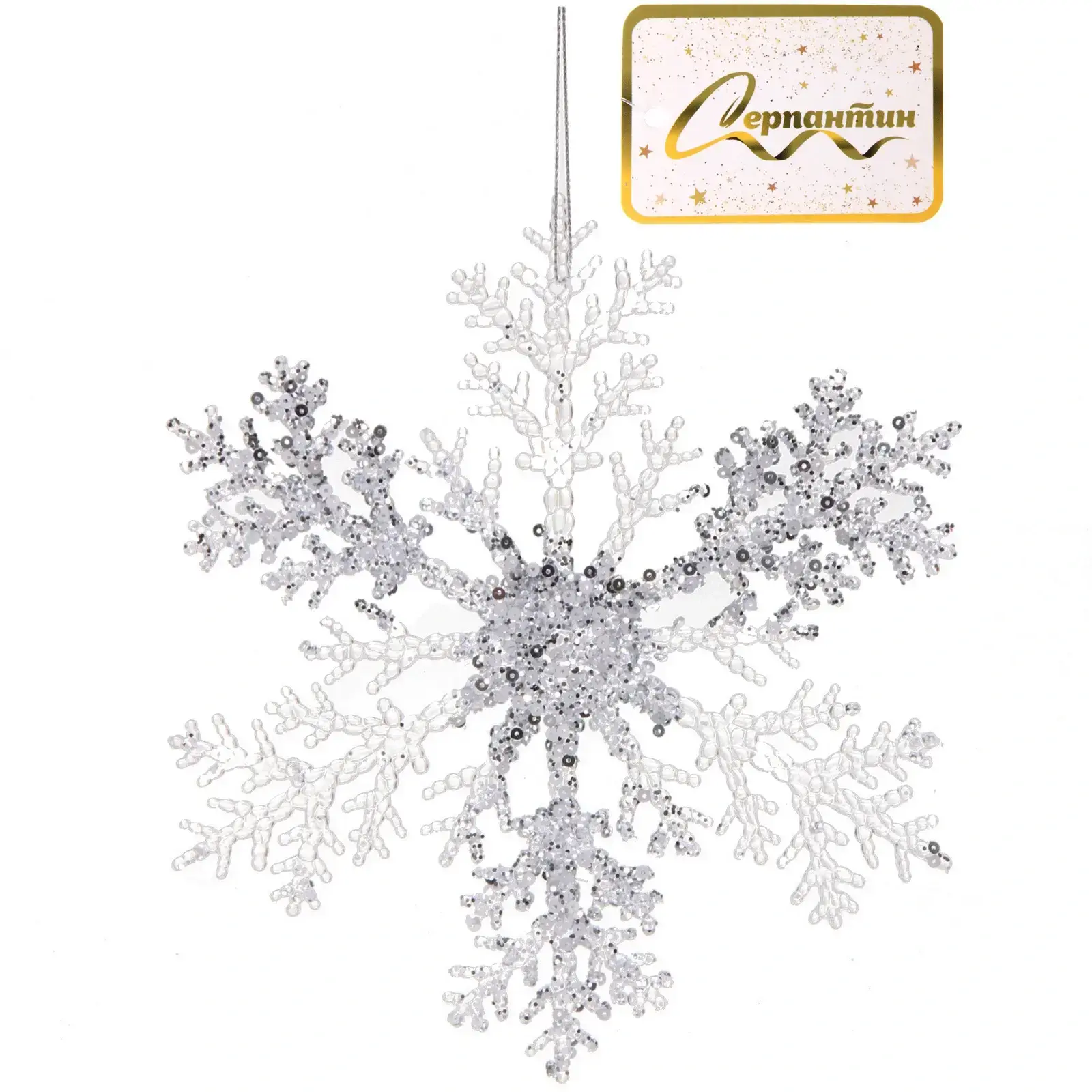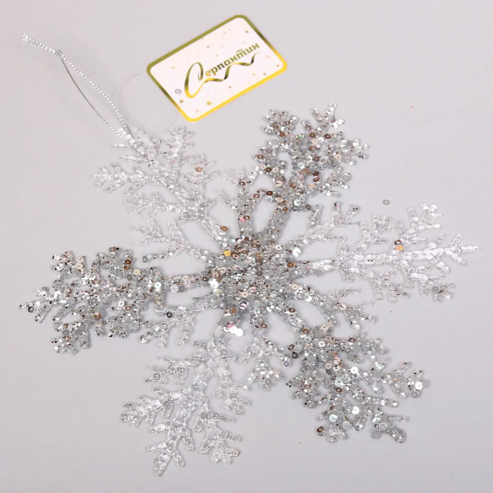 Эта новогодняя подвеска станет идеальным украшением для вашего дома в праздничный сезон. Снежинка размером 21 см выполнена из легкого и прочного пластика, что обеспечивает её долговечность и привлекательный внешний вид. Благодаря блестящим элементам, она будет красиво мерцать при любом освещении, создавая атмосферу уюта и праздника.