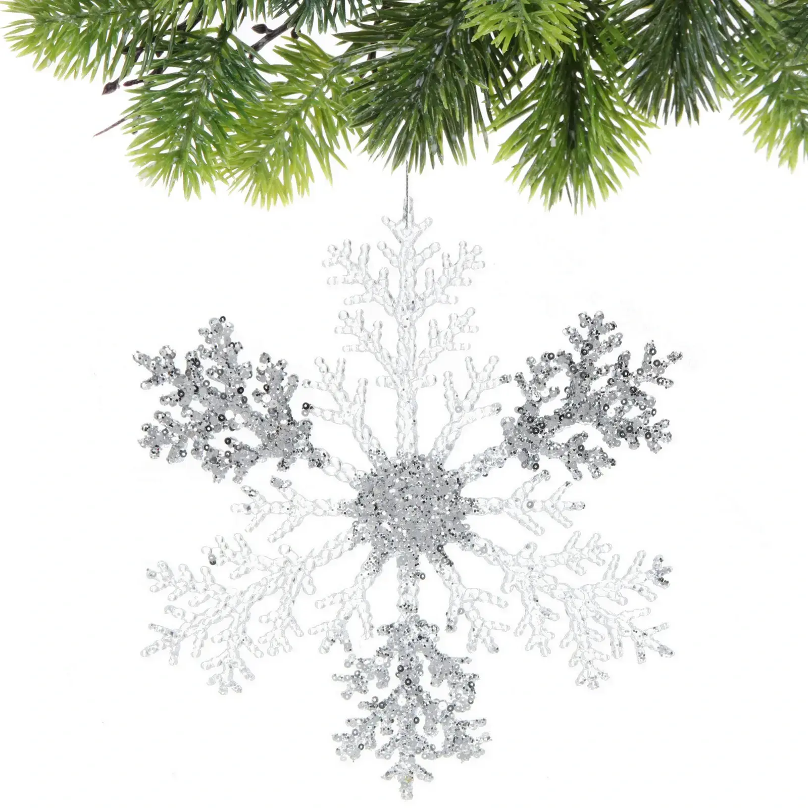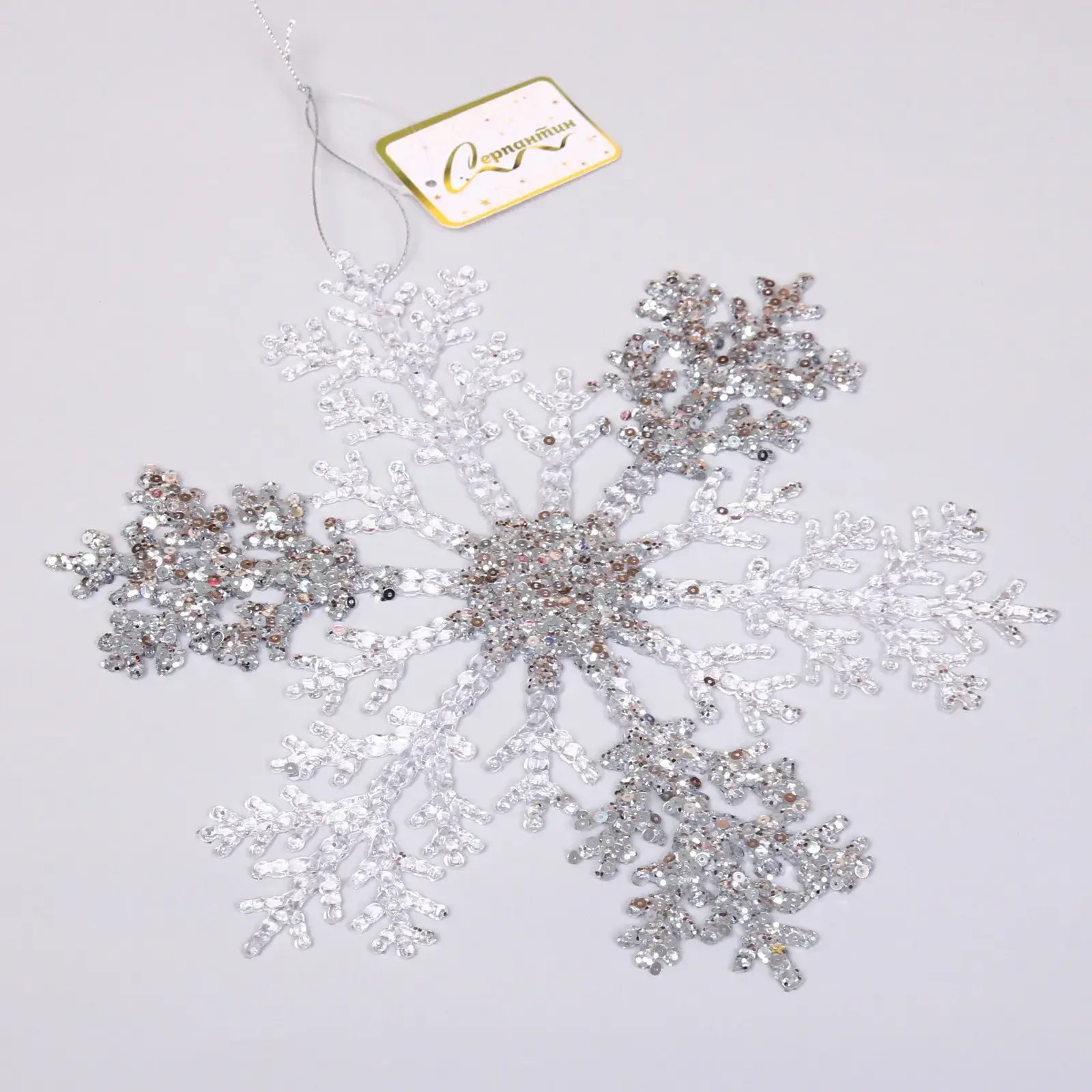 Почему стоит выбрать именно эту снежинку? Во-первых, её уникальный дизайн с шестиконечной формой и детализированными блестками создаёт эффект мерцания, который привлекает внимание и радует глаз. Во-вторых, материал, из которого она изготовлена, обеспечивает долговечность и устойчивость к повреждениям, что делает её идеальным выбором для многократного использования в течение многих сезонов.