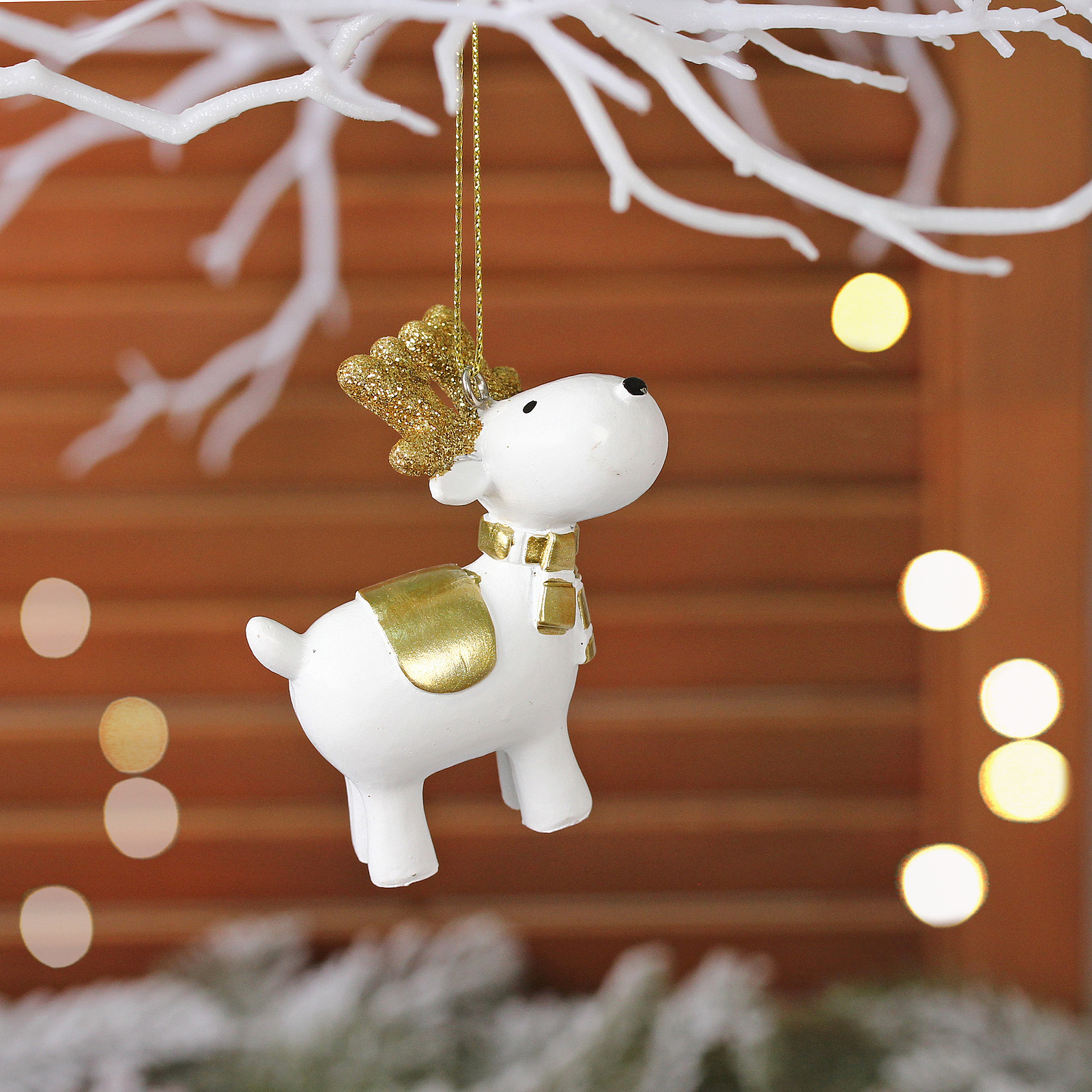 Подвеска 'Олененок' 6*4 см, белый/золото, для новогоднего декора
