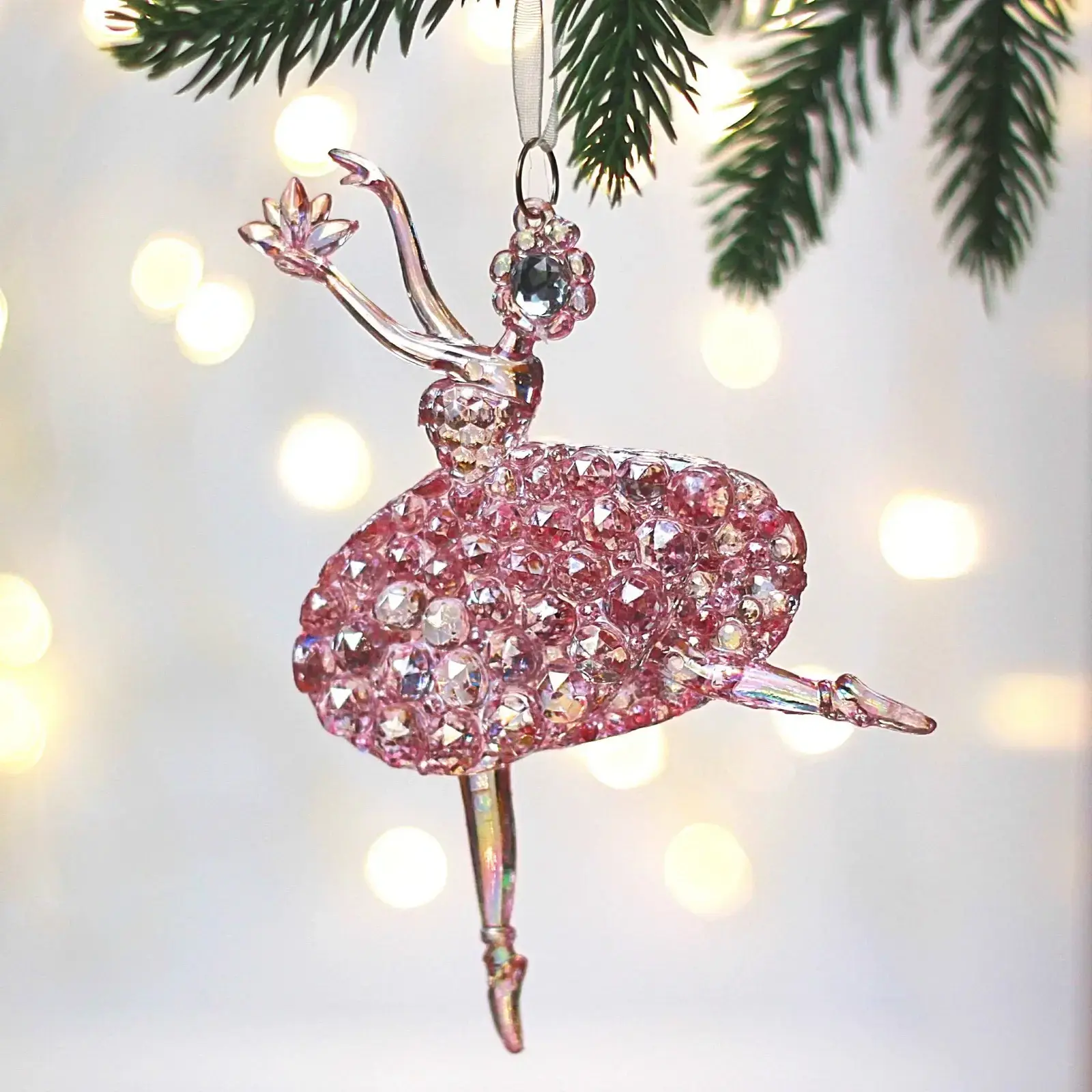 Создайте атмосферу волшебства и уюта с подвеской «Праздничный танец». Эта изящная фигурка балерины, выполненная из прозрачного розового материала, станет ярким акцентом в вашем новогоднем декоре. Благодаря блестящим элементам, она будет привлекать внимание и радовать глаз, создавая праздничное настроение.