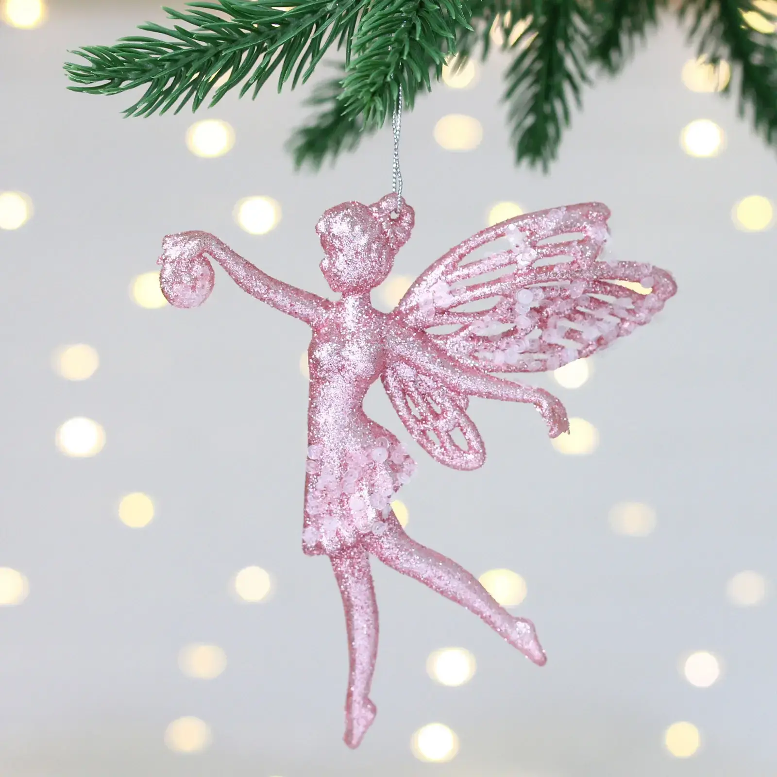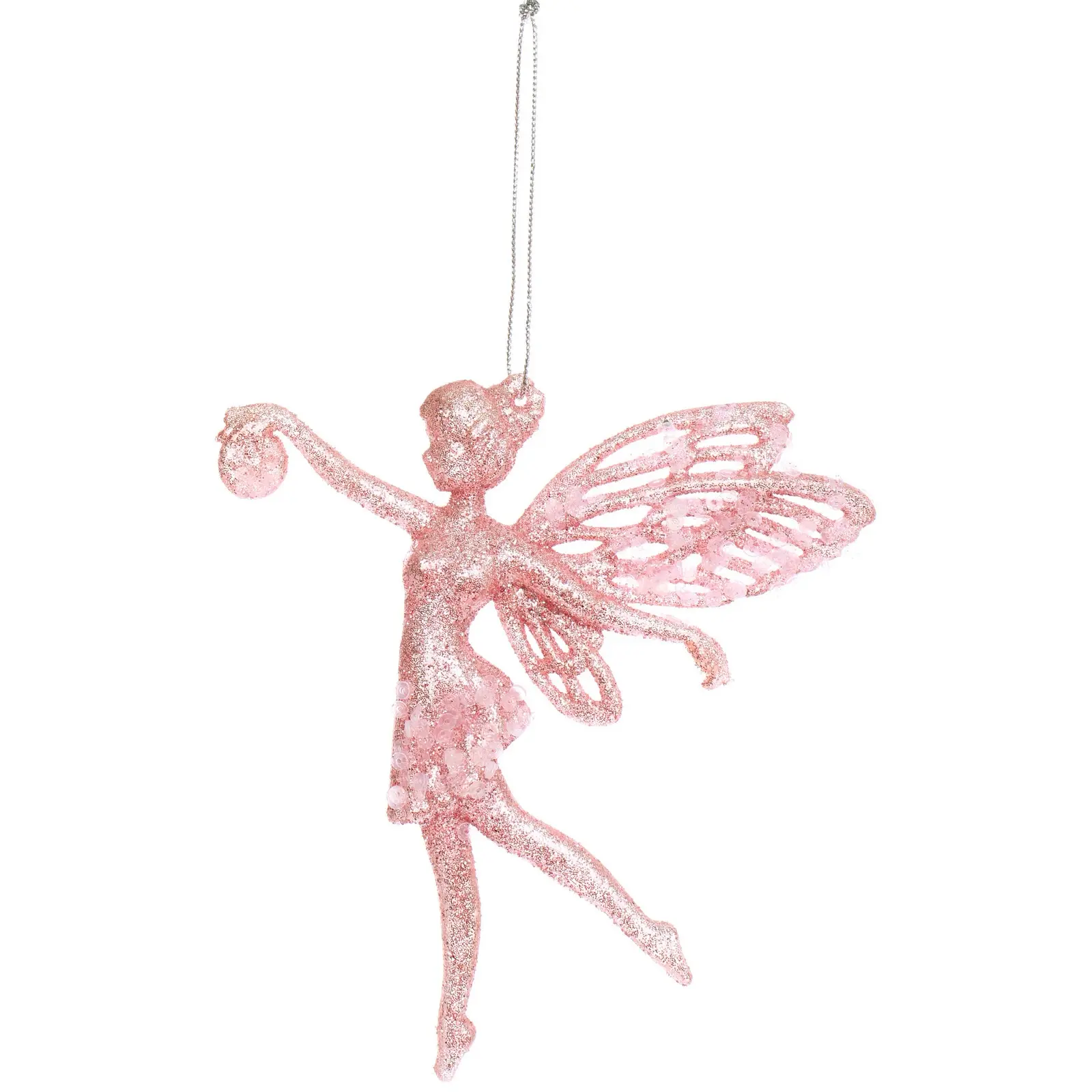 Подвеска предназначена для украшения новогодней ели, а также может использоваться как элемент декора в вашем доме. Благодаря металлической петле, ее легко повесить в любом месте. Фея изображена в динамичной позе с расправленными крыльями, что придаёт ей живость и очарование. Она станет отличным подарком для детей и взрослых, которые ценят красоту и магию праздников.