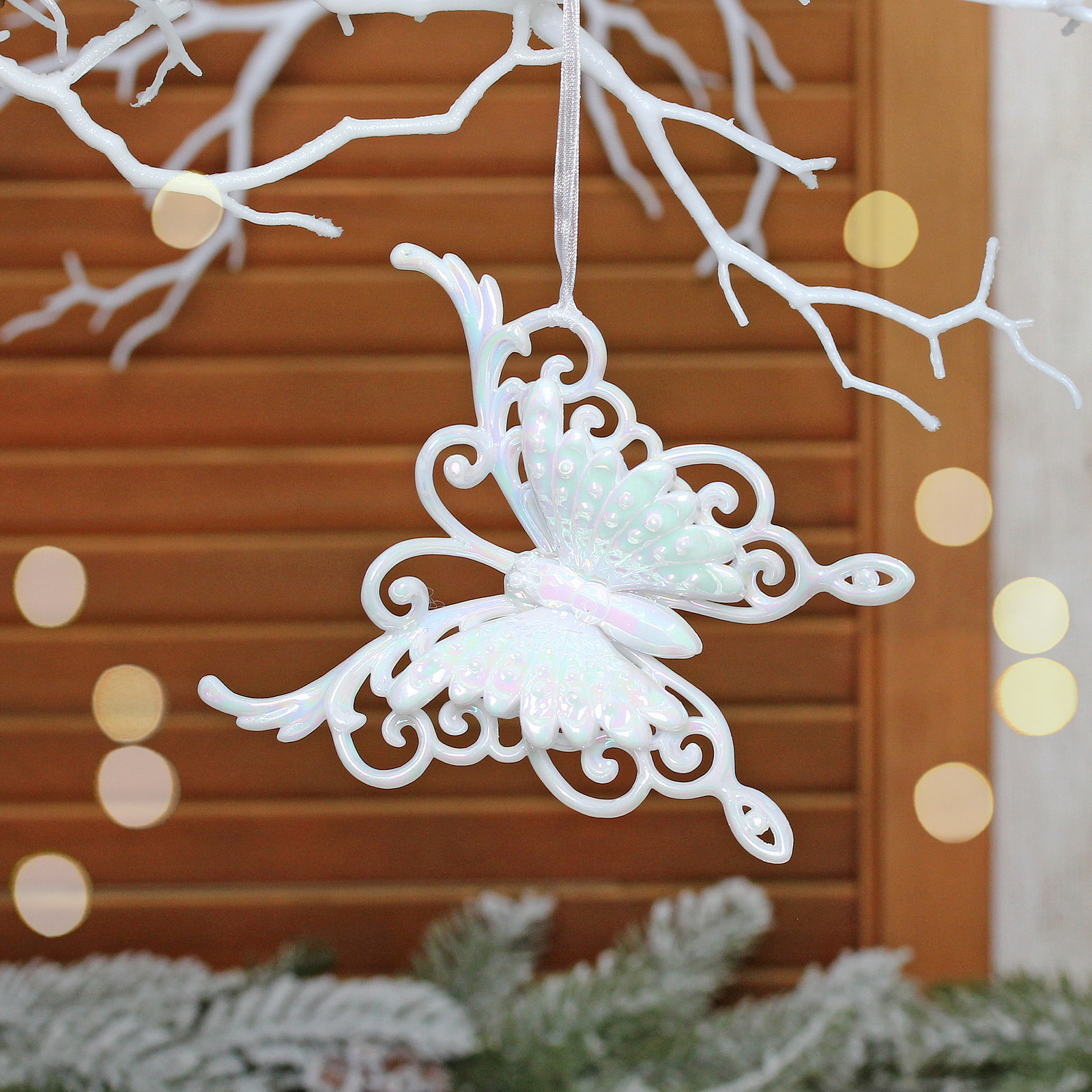Ёлочная подвеска декоративная "Роскошная бабочка" 11*9,5см, жемчужный цвет, пластик