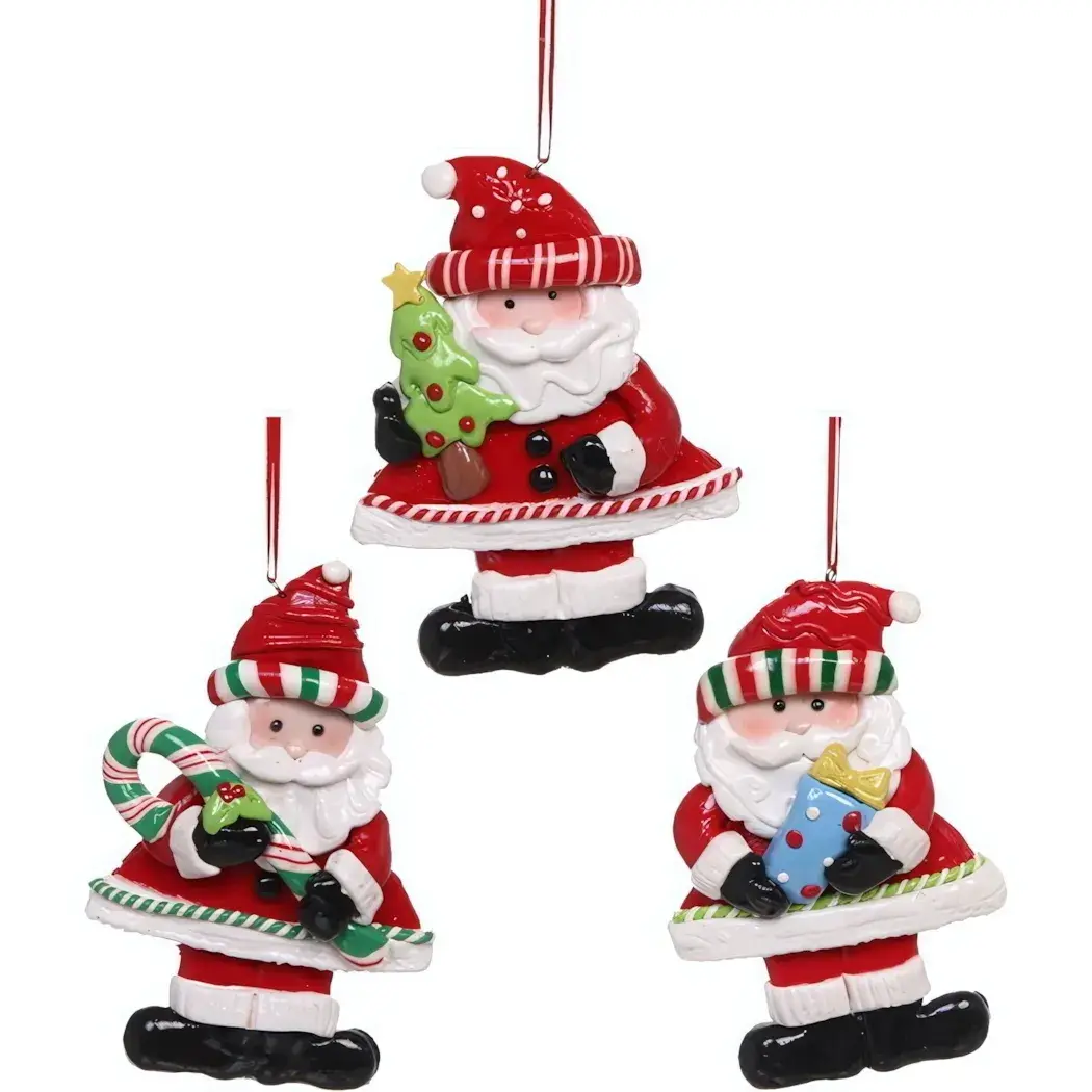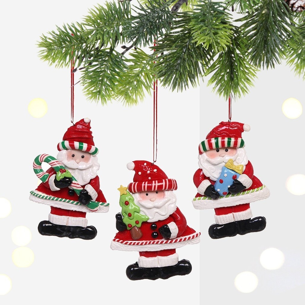 Подвеска имеет размер 12,7 см и выполнена в традиционном праздничном стиле. Каждый Дед Мороз держит в руках символы праздника: елочку, тросточку или подарок, что делает их идеальными для украшения елки или интерьера. Благодаря удобной веревочке, фигурки легко подвешиваются, что позволяет вам разместить их в любом уголке вашего дома.