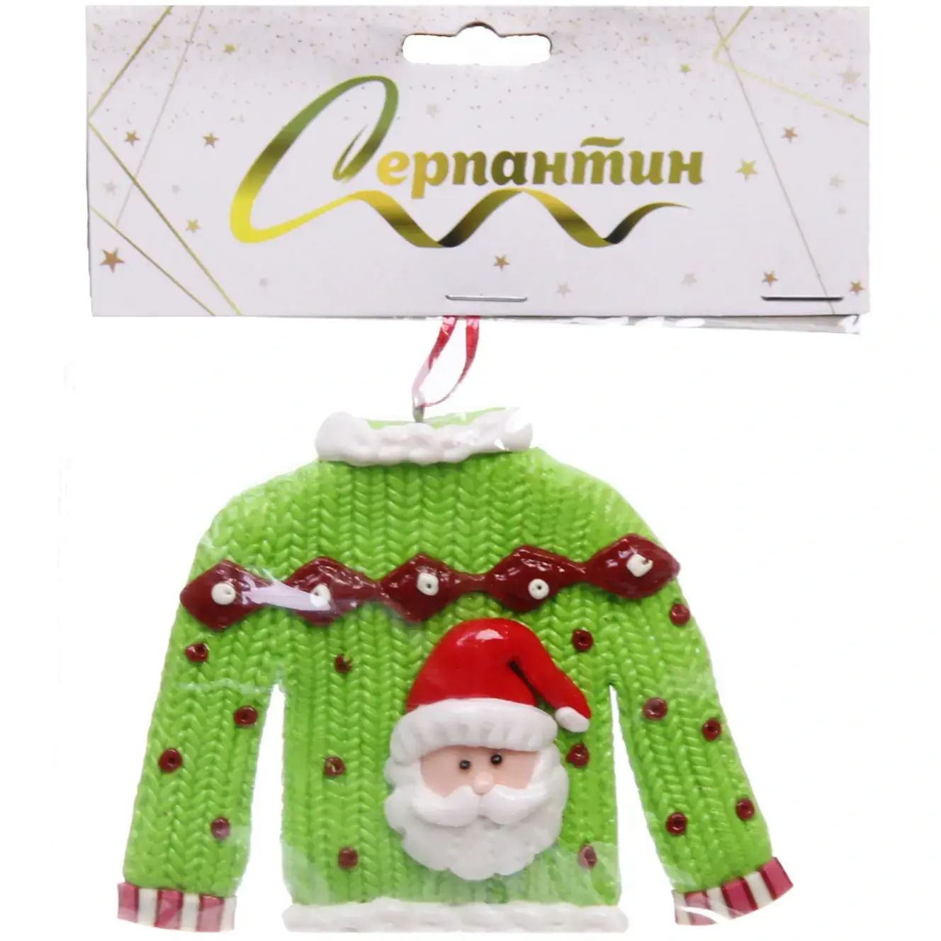 Эта уникальная подвеска станет ярким акцентом вашего новогоднего декора. Изготовленная из качественного полимера, она не только привлекает внимание, но и добавляет уют в атмосферу праздника. Подвеска выполнена в виде свитера, что делает её идеальным украшением для ёлки или интерьера. Яркие цвета и оригинальный дизайн свитера с изображениями Санта-Клауса, снеговика и оленя создают волшебное настроение, которое порадует как детей, так и взрослых.