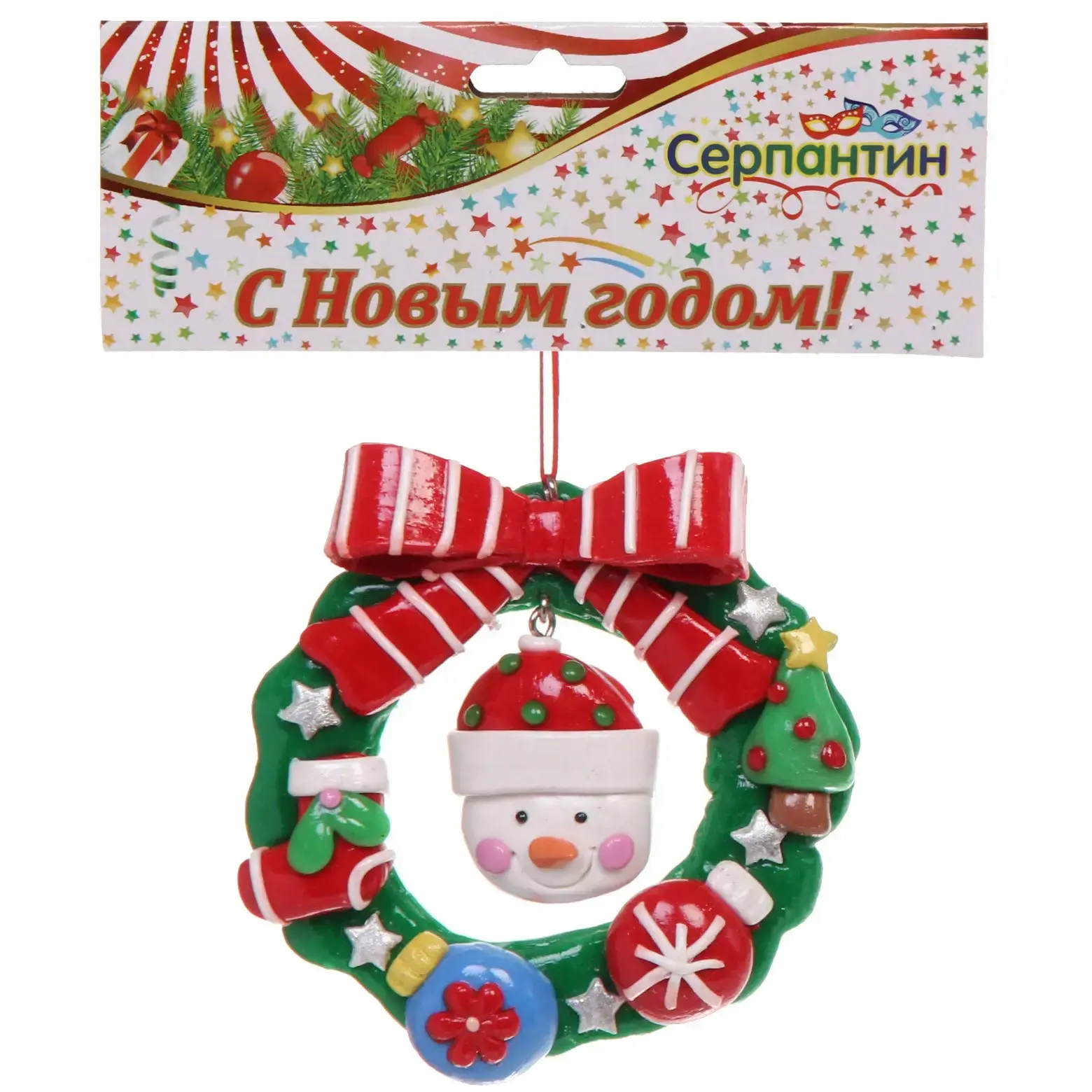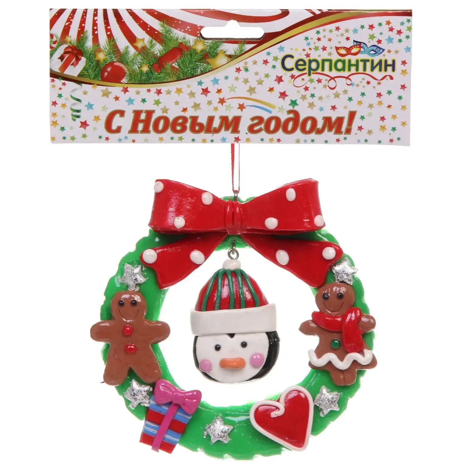 Новогодний венок 'Праздничный вечер', 10,2 см, полимер, красный/зеленый