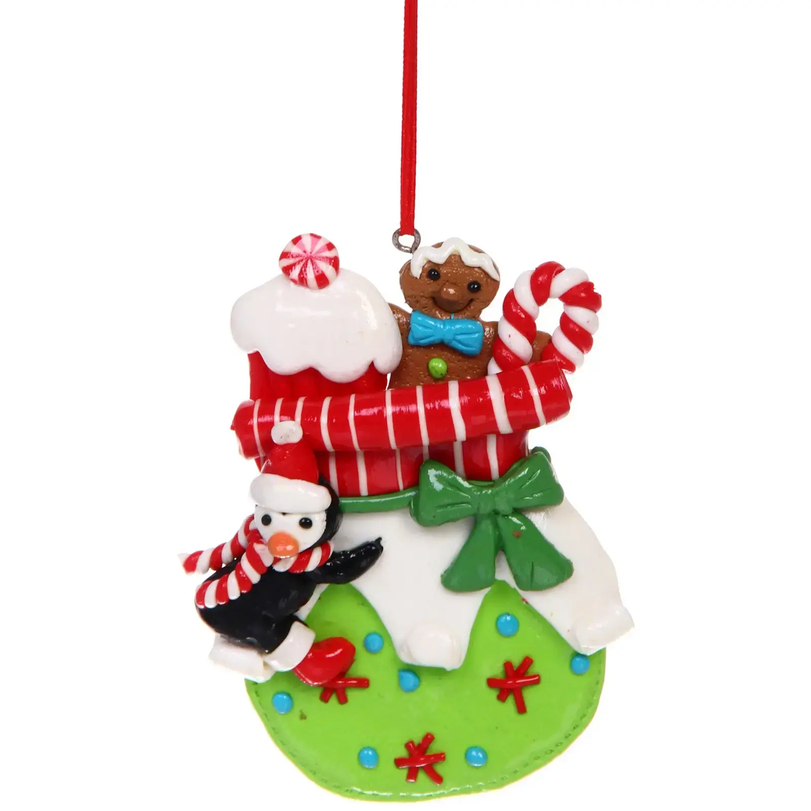 Яркие акценты красного, белого и зеленого цветов гармонично сочетаются между собой, создавая классический новогодний образ. Подвеска сохранит свой привлекательный внешний вид на протяжении многих праздников.