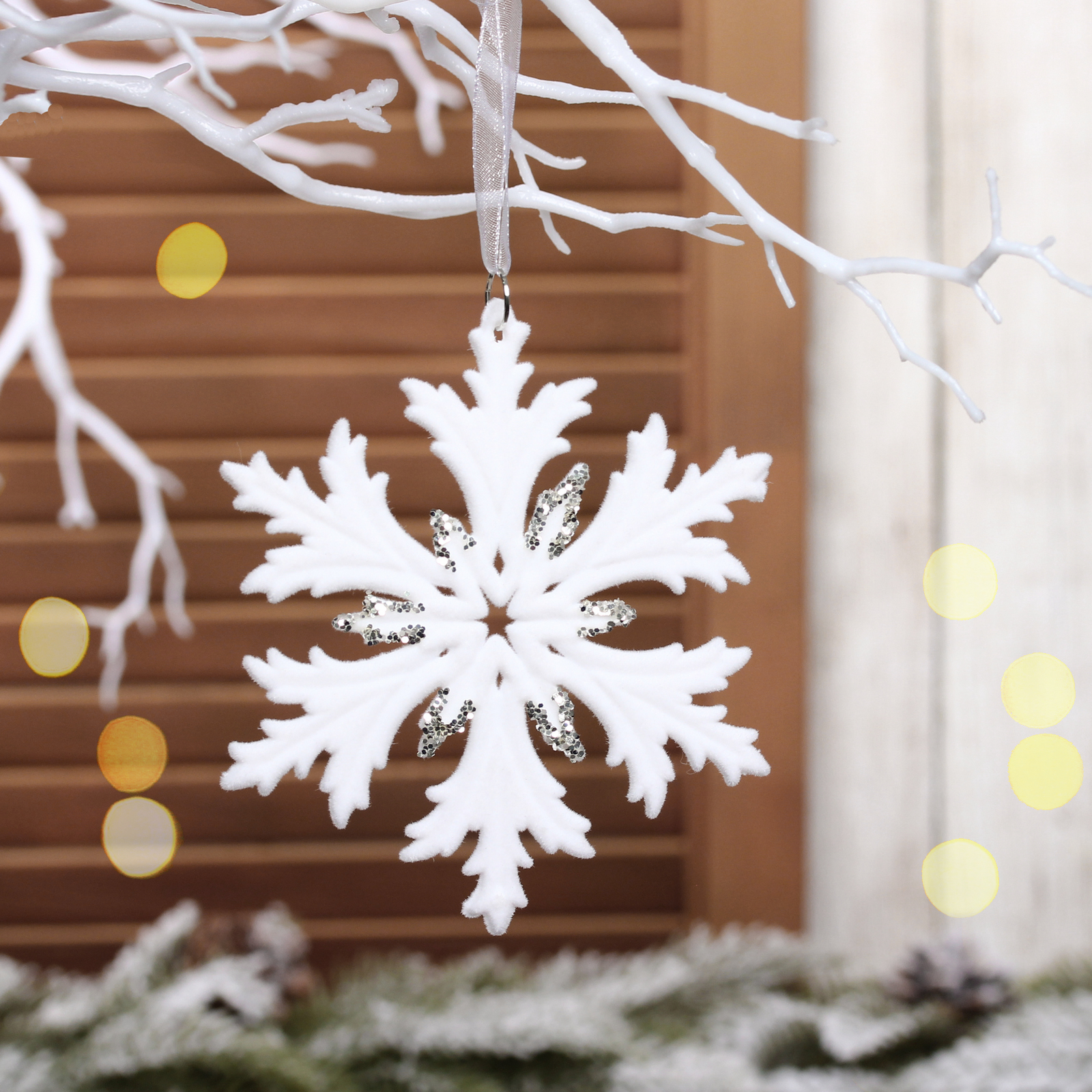 Подвеска декоративная «Сияющая снежинка», 10,5×12,1 см, пластик, белый/серебро